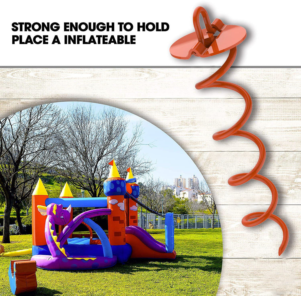 Q: Can these stakes be used for purposes other than securing trampolines?A: Yes, these heavy-duty spiral stakes can be used for various applications beyond trampolines, including securing tents, tarps, canopies, car ports, and even as dog tie outs.
