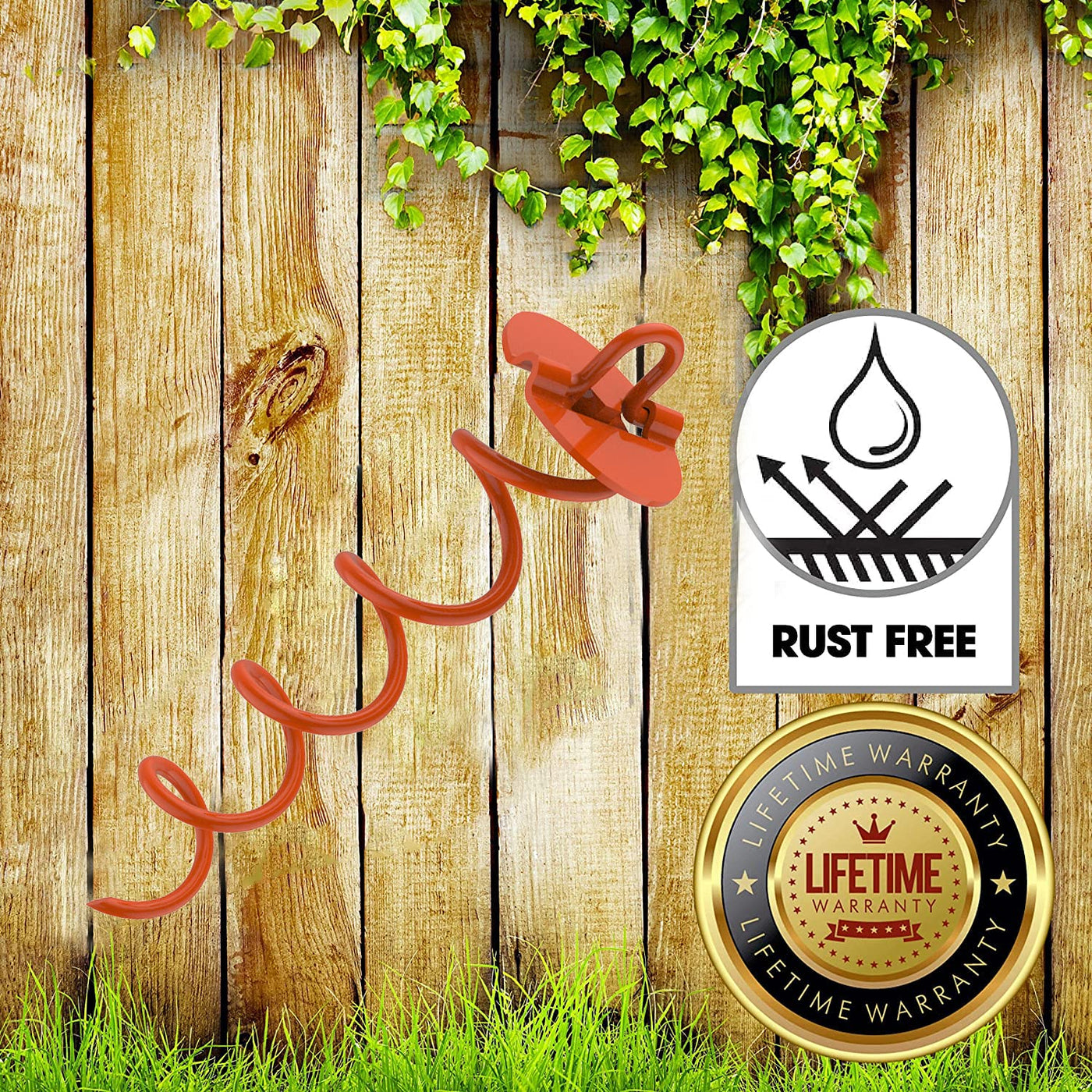 Eurmax Trampoline Stakes Heavy Duty Trampoline Parts corkscrew Shape Steel Stakes Anchor Kit for Trampoline-Orange (4)