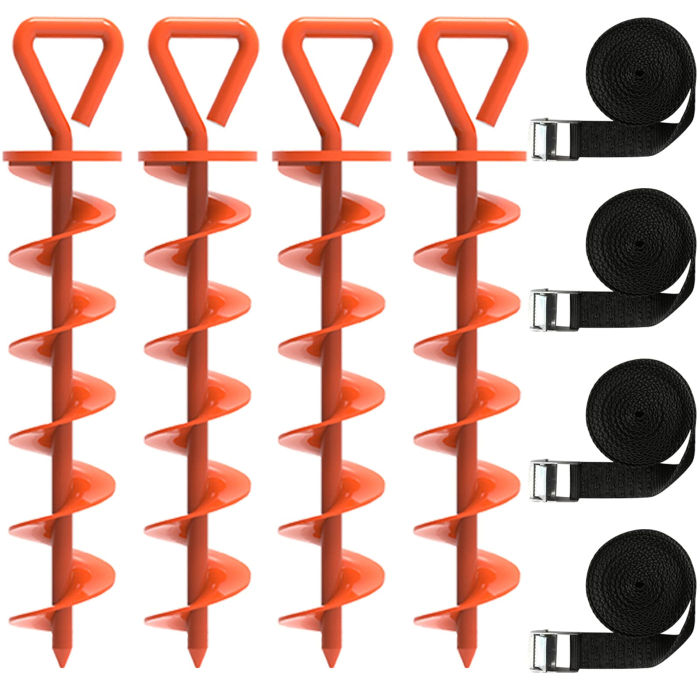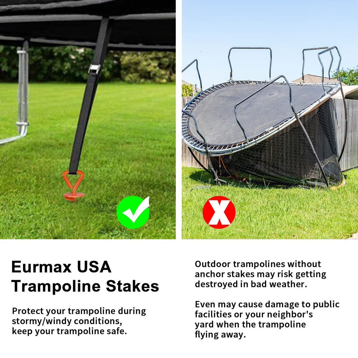 Eurmax Usa Trampoline Stakes Heavy Duty Trampoline Parts Steel Stakes Anchor Kit For Trampolines Canopy Anchor Dog Tie Out Stakes -Set Of 4 Bonus 4 Strong Belt(Orange)