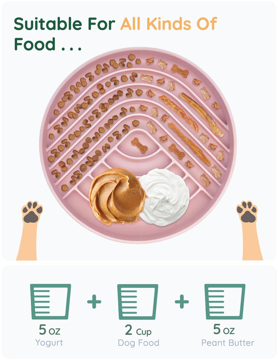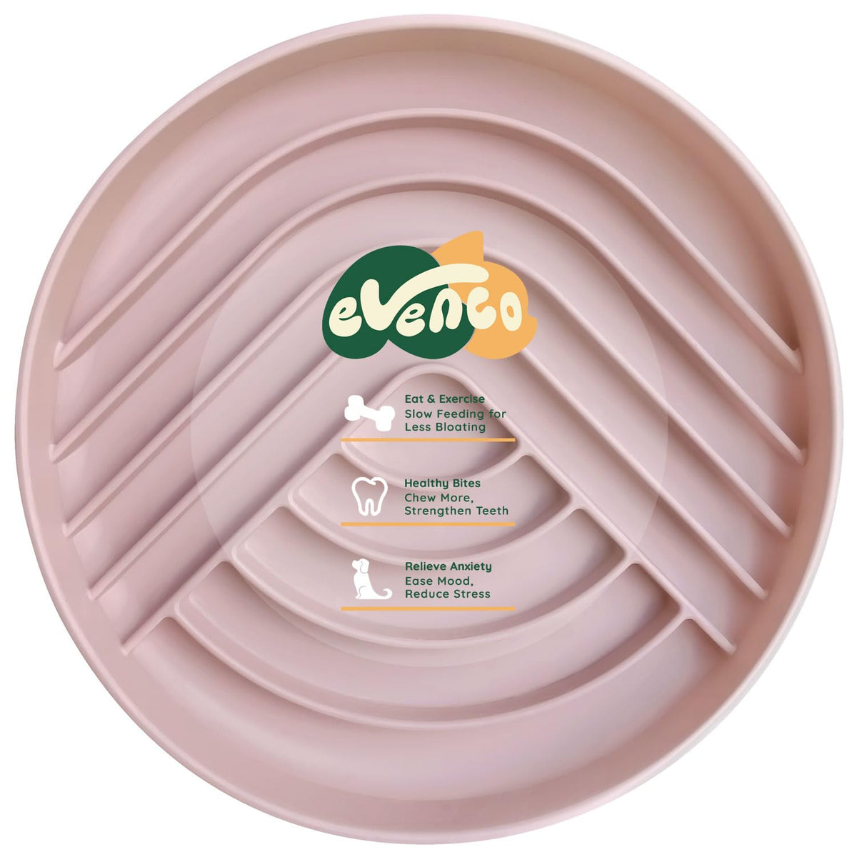 Evenco Slow Feeder Dog Bowls, Slowdown Bowl - Silicone Dog Feeding Bowls With Suction Cups For Puppies, Modern Lick Mat Design, Reduces Gulping, Dishwasher Fit, Mealtime Challenge, Pink