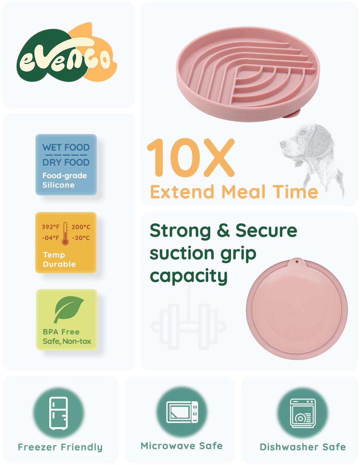 Evenco Slow Feeder Dog Bowls, Slowdown Bowl - Silicone Dog Feeding Bowls With Suction Cups For Puppies, Modern Lick Mat Design,