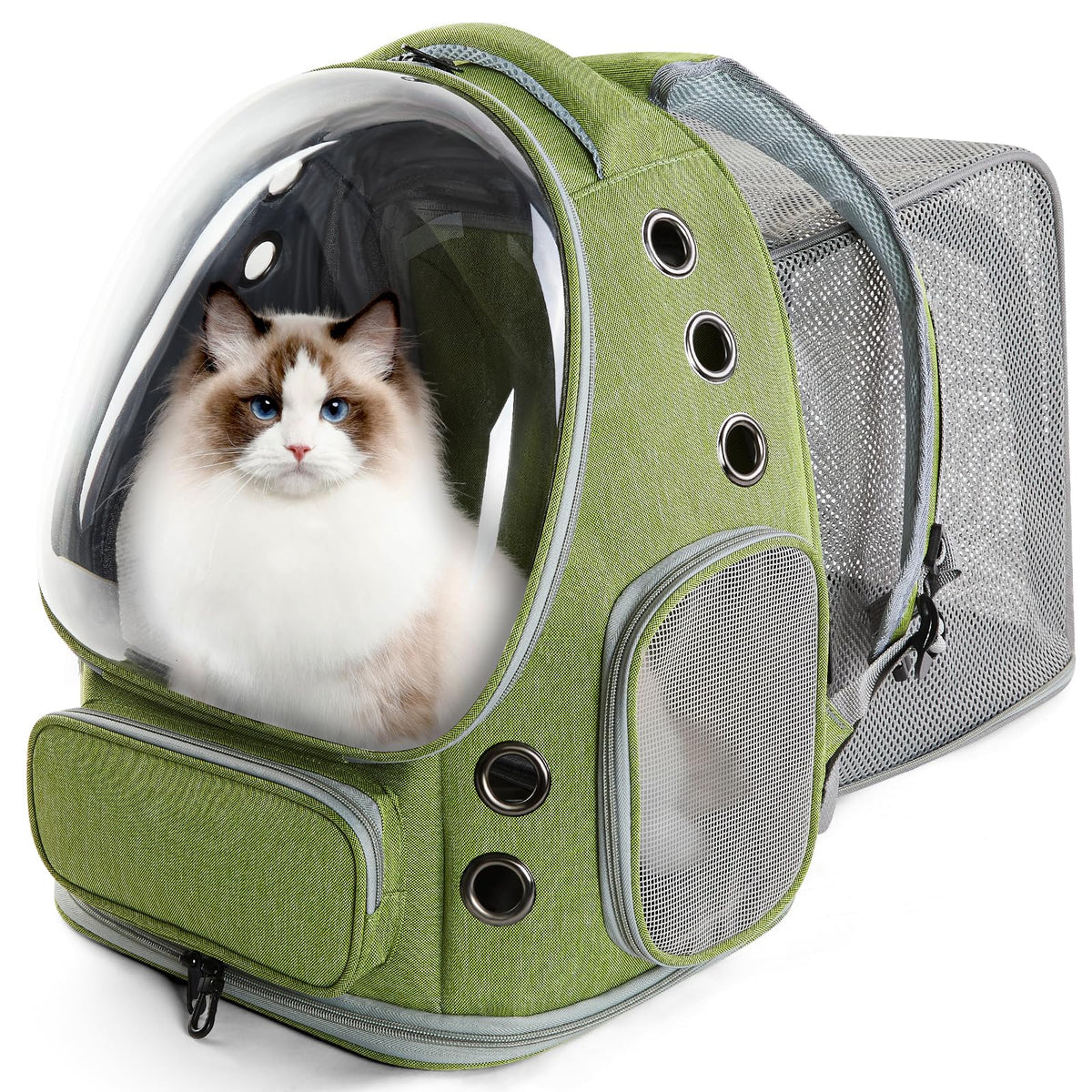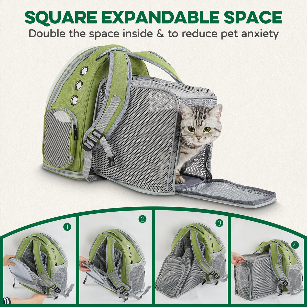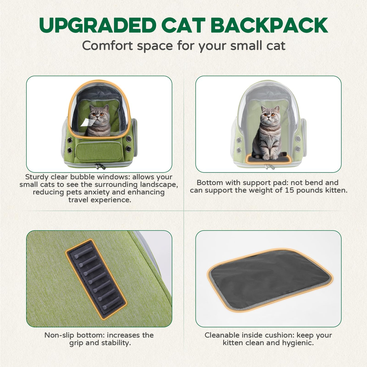 Evermow Is A Brand With The Mission Of Focusing On Producing Remarkable Pet Travel Products Which Explores World With Your Best Furry Friends, We Insist On Comfort Space For Your Pets. Cat Carrier Backpack Is Designed With Clear Bubble Window For Offering A Clear And Wider View For Your Furry Friend As They Explore The World With You.Additionally, Innovative Square Expandable Design Makes You To Create Double The Space Inside For Your Furry Friends During Trip. You No Need To Worry About Your Samll Cat Feeling Cramped, Pet Carrier For Cat Will Have Plenty Of Double Space To Ensures Their Freedom Of Activity And Relieve Pets Nervously. Dog Backpack Designed With 10 Excellent Ventilation Holes And Breathable Mesh Panels Ensures Fresh Air For Your Small Cats And Puppy. Featuring A Sturdy And Durable Dual Zipper With Lock And Built-In Safety Lock To Prevent Your Pets Anti-Escape And Ensure Your Small Cats And Dogs Stay Safely Inside The Backpack.Cat Backpack Bubble Carrier Comes With Adjustable Chest Buckles That Keeps Backpack Stable And Reduces The Burden Of Your Shoulders. This Cat Backpack Bubble Window Comes With Ergonomic Design, Adjustable Shoulder Strap Can Reduce Shoulder Weight And Be Suitable For Pet Lover Of Various Body Types And Makes You More Comfortable When You Wear It. Featuring A Side Pocket And Front Pocket To Carry Essentials Such As Snacks, Toys And Water Bottles For Your Kitty. This Small Cat Bubble Backpack Features 3 Ways Of Entrances Ensuring Easy To Get Kitten In And Out.This Cat Back Pack Clear Is Designed For Travel, Hiking, Outdoor, Vet Visit, Camping, Biking. With Support Pad Bubble Backpack Pet Carrier Can Support The Weight Of Up To15 Pounds Kitten.