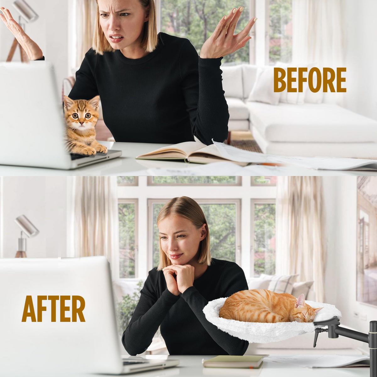 Bring The Comfort Of A Cozy Nap To Your Workspace With The Cat Desk Bed. This Innovative Product Combines A Plush, Cushioned Bed With A Raised Platform, Allowing Your Feline Friend To Snuggle Up And Catch Some Z'S Right Next To You While You Work. The Bed'S Soft, Supportive Surface Provides A Warm And Inviting Spot For Your Cat To Curl Up And Relax. Its Compact Design Fits Neatly On Your Desk Or Table, Keeping Your Furry Companion Within Arm'S Reach For Occasional Pets And Snuggles During Breaks. With Its Convenient Size And Stylish Appearance, The Cat Desk Bed Seamlessly Integrates Into Any Home Office Or Workspace, Ensuring Your Beloved Pet Can Stay Close By Throughout The Day.