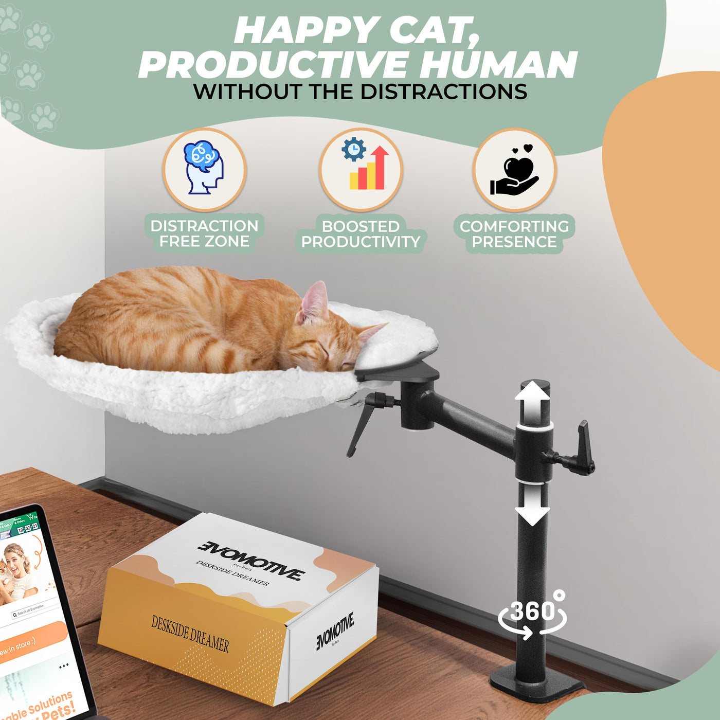 Evomotive Deskside Dreamer - Cat Desk Hammock, Comes With 2 Washable Fabrics: Mesh And Plush, 360 Rotating & Height Adjustable [