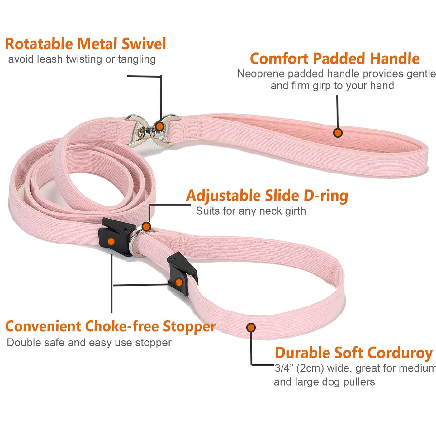 Size: 6Ft Long, 3/4'' Wide.Material: 100% Corduroy Fabric, With Soft And Thick Neoprene Padded Handle.Premium Corduroy: Soft Yet Durable Corduroy For Pet Comfort And Longevity.Great For Training: The Slip Leash Tightens When Your Dog Pulls And Loosens When The Behavior Is Corrected. Great Dog Training Leash To Correct The Behavior Under Control.The Padded Handle Is Comfortable To Hold During Extended Walks, Runs, And Hikes. The Unique Three-Dimensional Padding Makes It Much More Comfortable To Hold And Wrap Around Your Hand. Great For Pullers. Separate Plastic Bumpers Slide To Adjust A Tight/Loose The Collar For More Universal Fit.