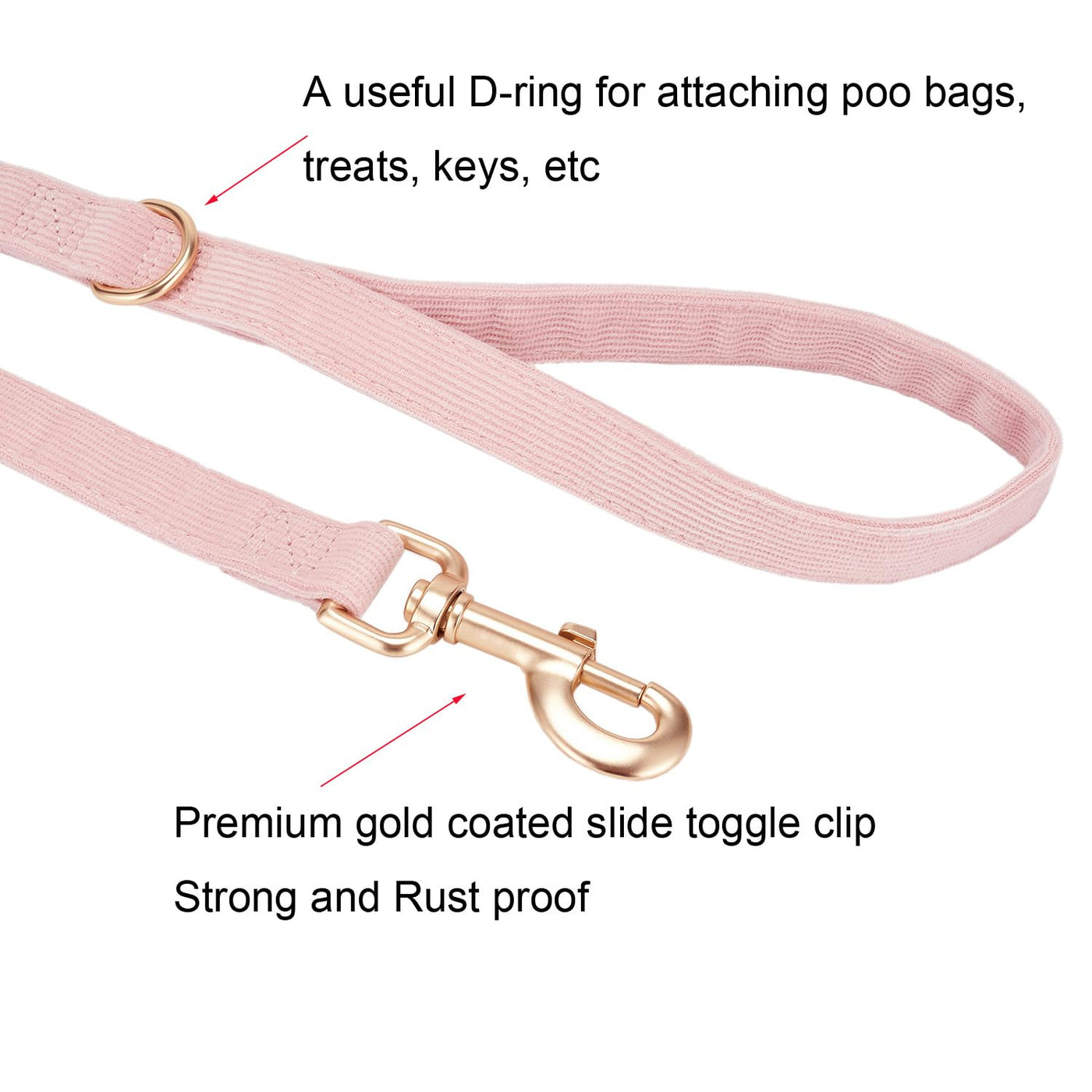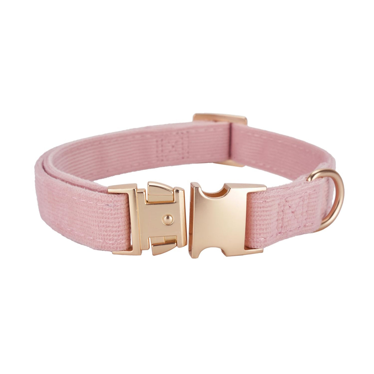 Ewinoom Soft Corduroy Dog Collar and Leash Set, Adjustable Cotton Dog Collars with Metal Buckle and Lead for Medium Dogs,Baby Pi