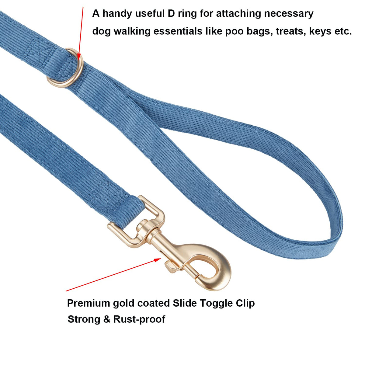 Ewinoom Soft Corduroy Dog Collar and Leash Set, Adjustable Cotton Dog Collars with Metal Buckle and Lead for Medium Dogs,Blue