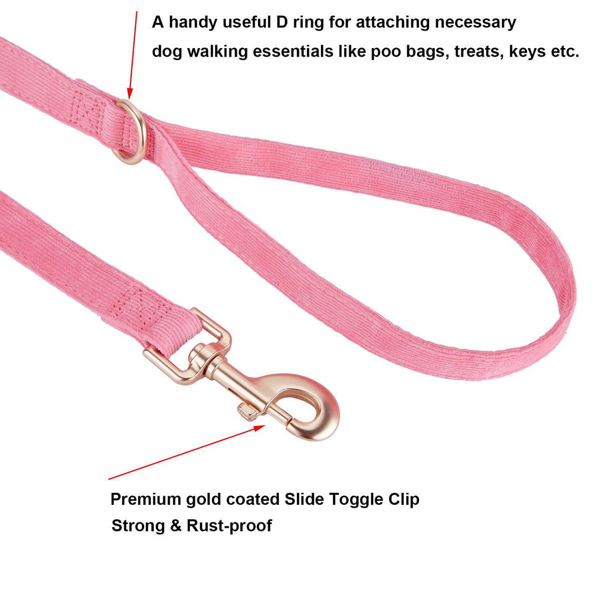Ewinoom Soft Corduroy Dog Collar and Leash Set, Adjustable Cotton Dog Collars with Metal Buckle and Lead for Small Dogs,Hot Pink