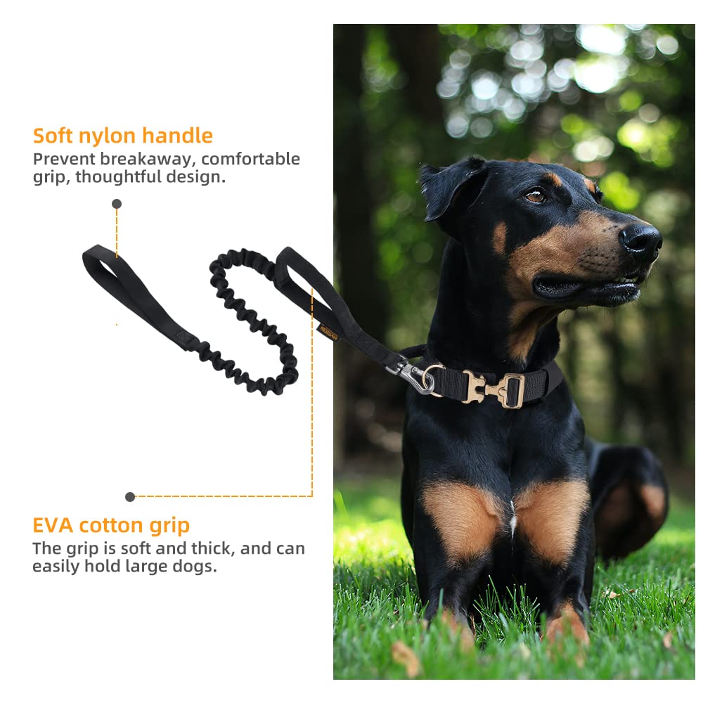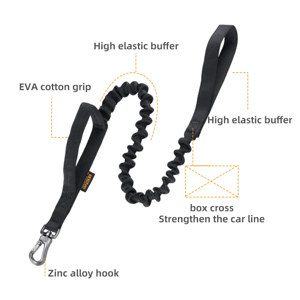 Excellent Elite Spanker Military Bungee Dog Leash Elastic Leads Rope With 2 Padded Control Handle For Medium And Small Dogs (Black)