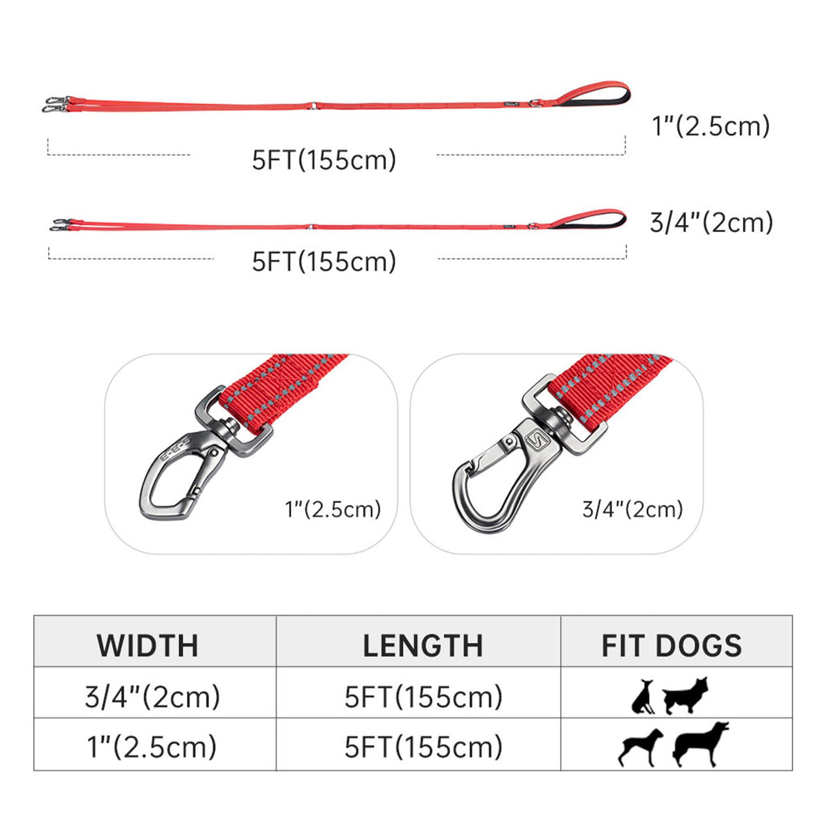 Excellent Elite Spanker Reflective Dual Dog Leash 5Ft Purple