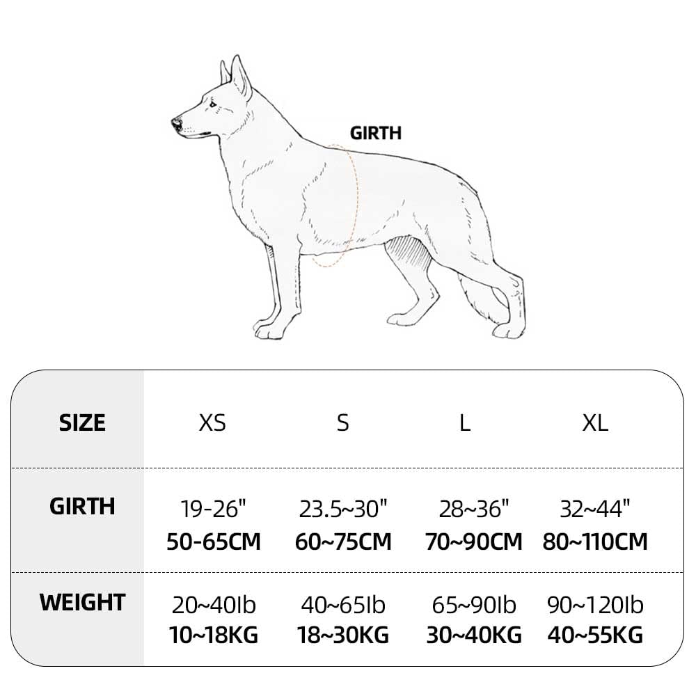 Q: What sizes are available for the EXCELLENT ELITE SPANKER Tactical Dog Harness?A: The EXCELLENT ELITE SPANKER Tactical Dog Harness is available in sizes XS, S, L, and XL, with adjustable bust girths ranging from 19.5" to 43.5" to accommodate different dog breeds comfortably.