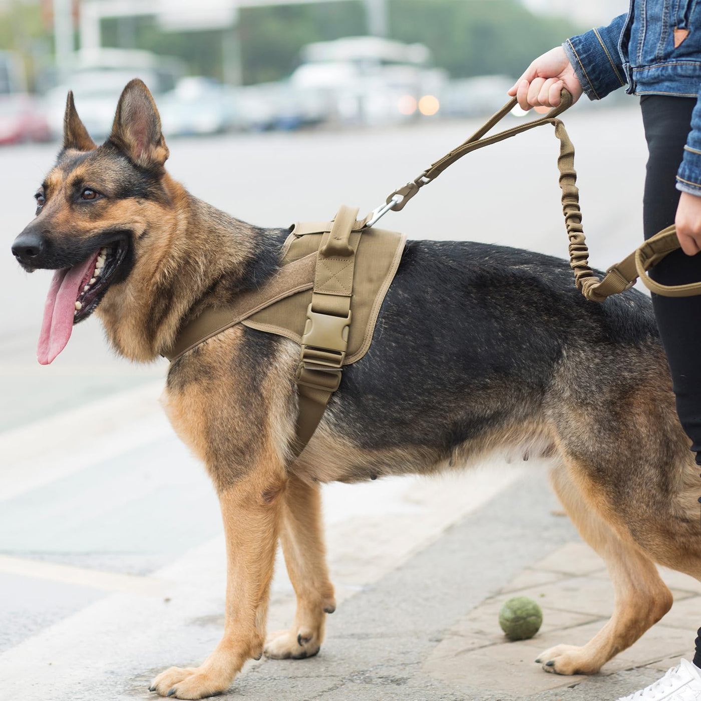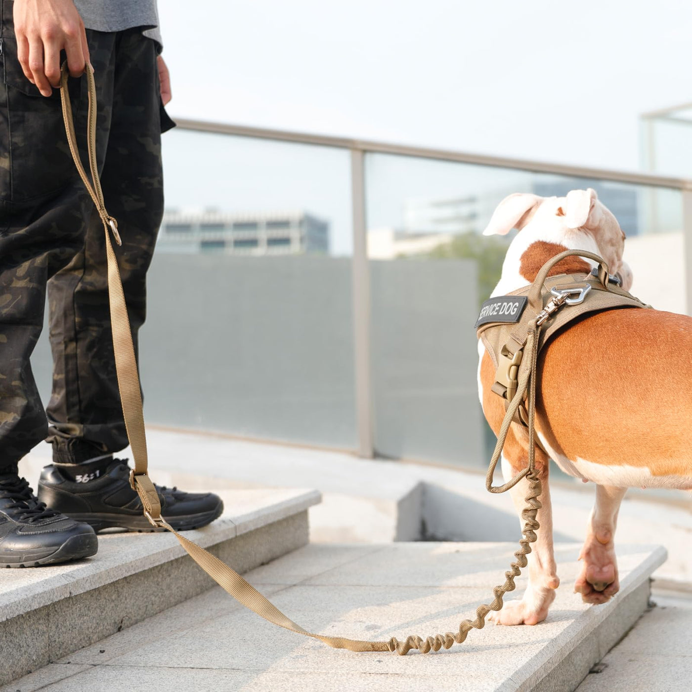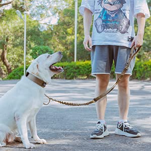 Product Feature: Material:Nylon Material, Metal Buckle. The tactical dog leash has two handles with soft padded,adjustable length:convenient for you to adjust the length as desired. With quick release metal buckle,the zinc alloy thickening metal hook is made of high quality zinc alloy material, stronger than before. This bungee leash for dog has a good elasticity provides sufficient stretching force. Colour: Black/Coyote Brown/Ranger Green/Grey/MCP. Elastic dog leash. Length:49-61 inches. Product Weight: 7 ounces. Package Included: Dog Leash x1