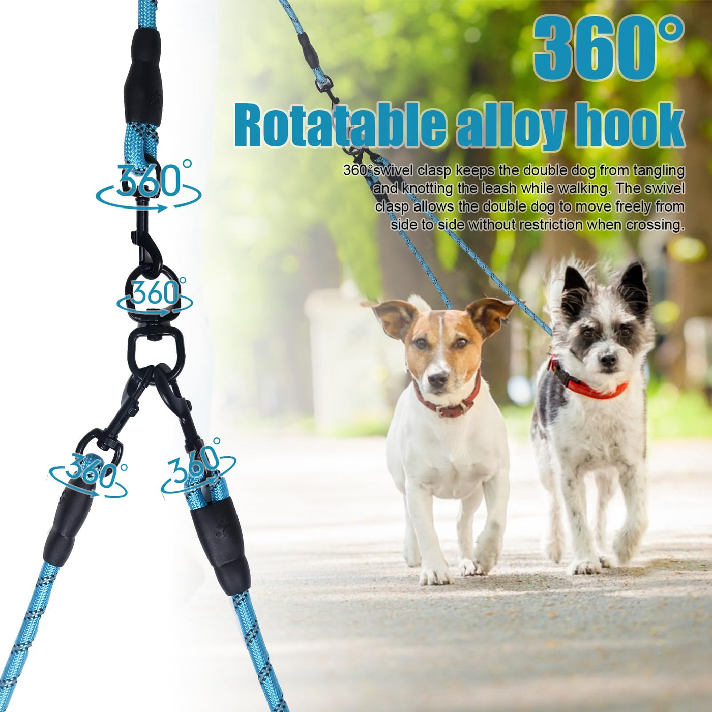 Discover The Ultimate Walking Experience With Our Dual Dog Leash - The Perfect Solution For Managing Multiple Dogs. Our Leash Ensures A Tangle-Free Walking Experience Thanks To Its 360 Swivel Feature, Even When Walking With 2 Or More Dogs Together. The Leash'S Soft Foam-Padded Handle Ensures Maximum Comfort For You, Coupled With The High-Density Braided Rope And Robust Zinc Alloy Buckle Providing Durability. For Added Safety, The Reflective Threads Ensure Visibility During Low-Light Conditions. Thanks To Our Versatile Multi-Rope Design, You Can Effortlessly Manage One Dog Or More At The Same Time. Experience The Joy Of Hassle-Free Walks With Your Furry Friends With Our Dual Dog Leash Today!