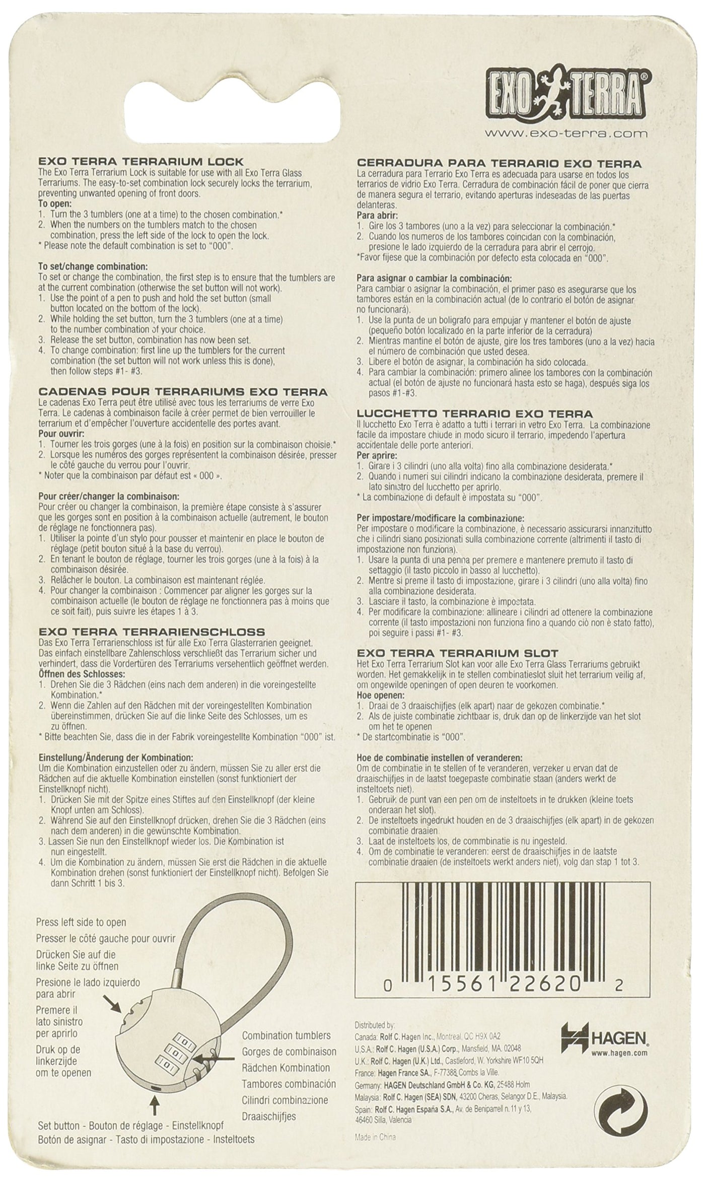 Secure combination lock for Exo Terra Glass TerrariumsPrevents accidental openingChild-proofSuitable for all Exo Terra Glass Terrariums
