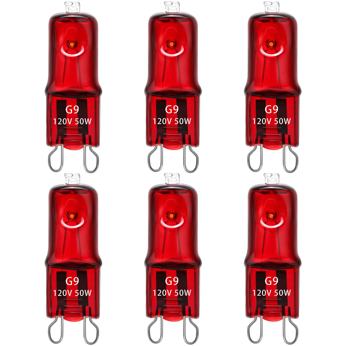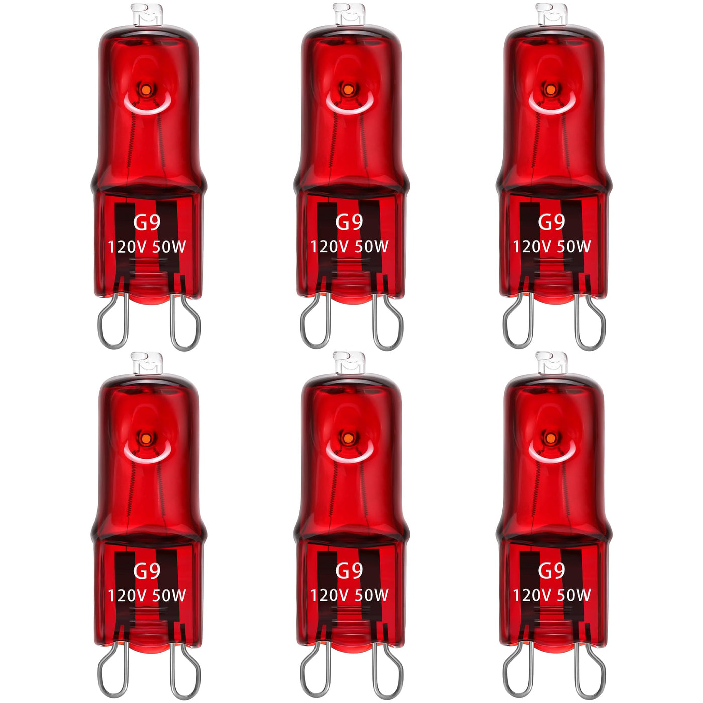 ExoRepti 6 Pack G9 Infrared Heat Lamp Bulbs - Dimmable Night Red UVA Reptile Heat Lamp, 2 Pin Base Mini Reptile Light Bulb Repla