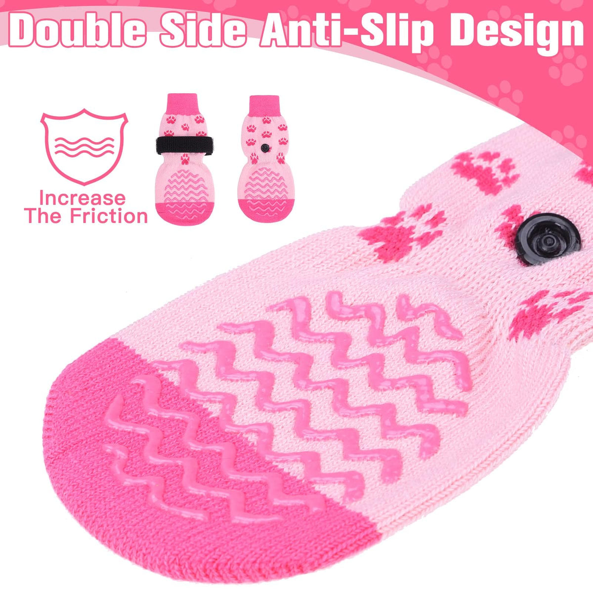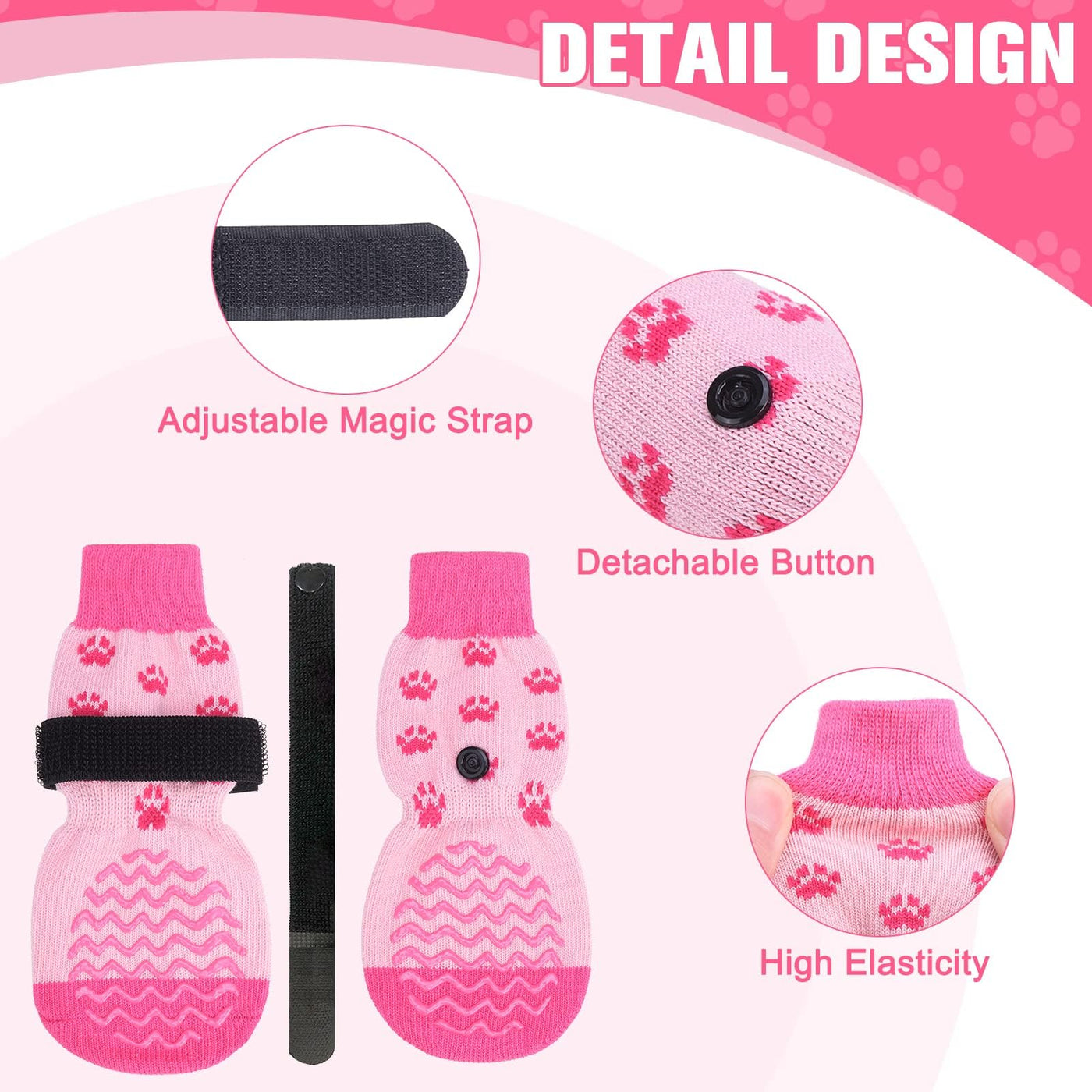 Adjustable Design: Each dog sock is equipped with an adjustable detachable magic tape which can adjust the appropriate tightness according to the shape of your dog 's paw. Let your active dog not fall down during exercise. Note: Don 't fix it too tightly your dog will feel uncomfortable.