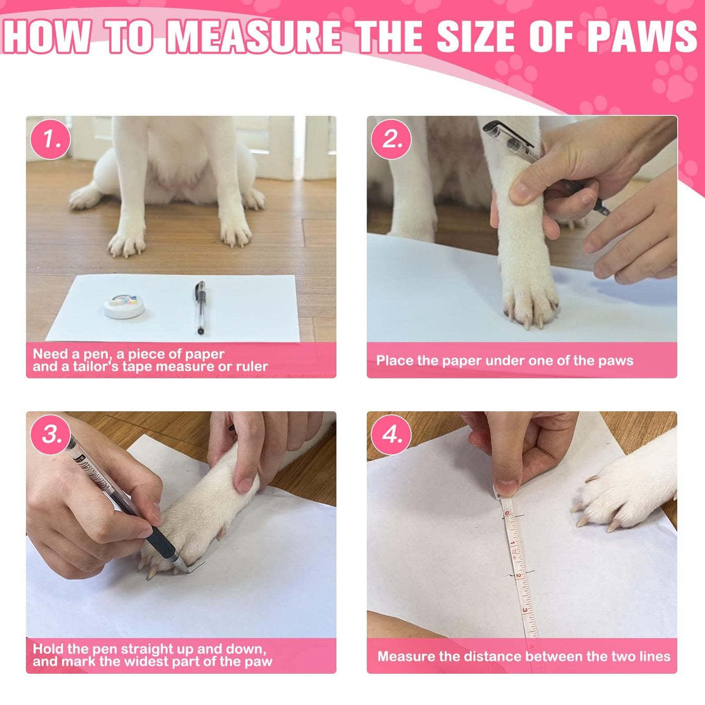 Size XS: Paw width 1.8 '' Length 4.8 '' Grip width 1.4 ''. This dog sock is available in 5 sizes. Please measure your paw size before purchasing. If your size is between two sizes it is better to choose a smaller size. Because our paw protector socks are made of elastic fabric.
