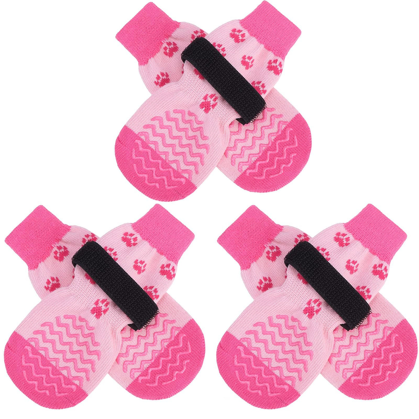 EXPAWLORER Double Side Anti-Slip Dog Socks with Adjustable Straps 6 Pack Prefect for indoor wearing such as hardwood floors Protect your pet ' paw by soft socks and providing strong traction Anti-slip rubber print on the soles to provide extra traction on slippery surfaces especially on hardwood floors.