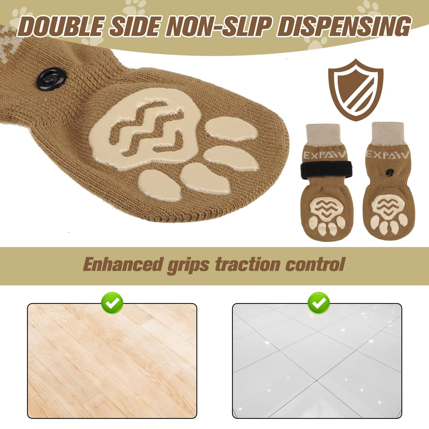 Expawlorer 3 Pairs Double Side Anti-Slip Dog Socks With Adjustable Straps Prefect For Indoor Wearing, Such As Hardwood Floors Protect Your Pet' Paw By Soft Socks And Providing Strong Traction Anti-Slip Rubber Print On The Soles To Provide Extra Traction On Slippery Surfaces, Especially On Hardwood Floors.
