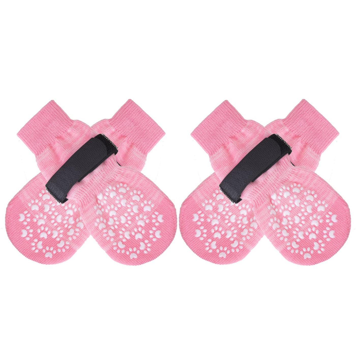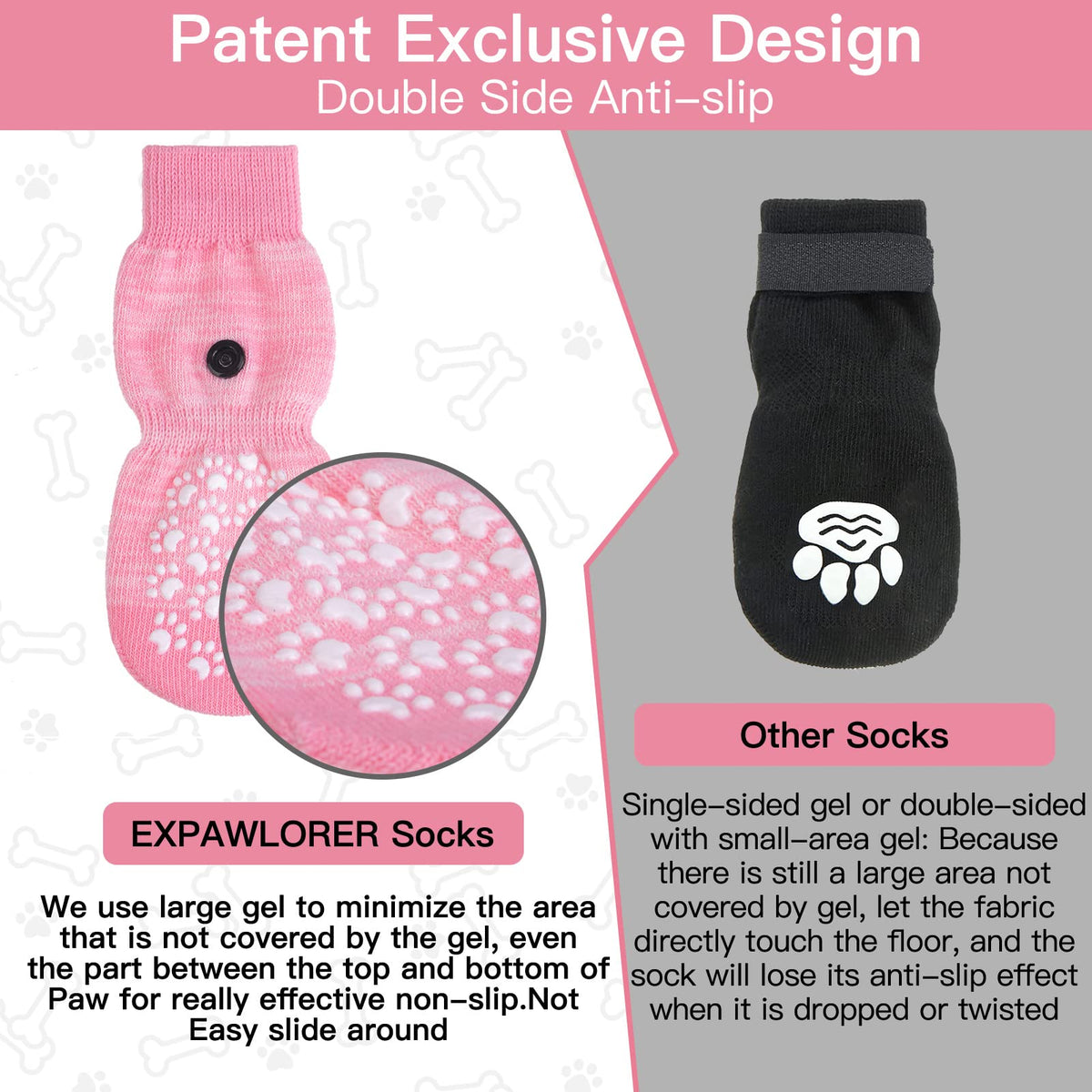 EXPAWLORER Double Side Anti-Slip Dog Socks 2 Pairs - Adjustable Pet Paw Protector with Strap Traction control Non-Skid for Indoor on Hardwood Floor Wear Paw Protection for Puppy Dogs