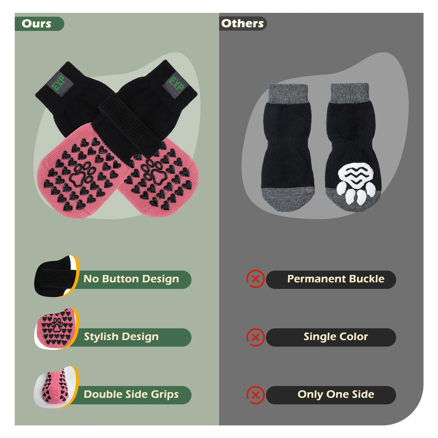 EXPAWLORER Anti Slip Dog Socks to Prevent Licking Paws - Dog Shoes for Hot Pavement, Dog Boots & Paw Protectors, Dog Booties for