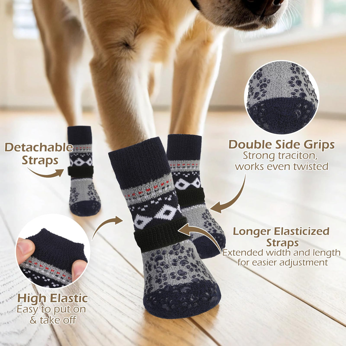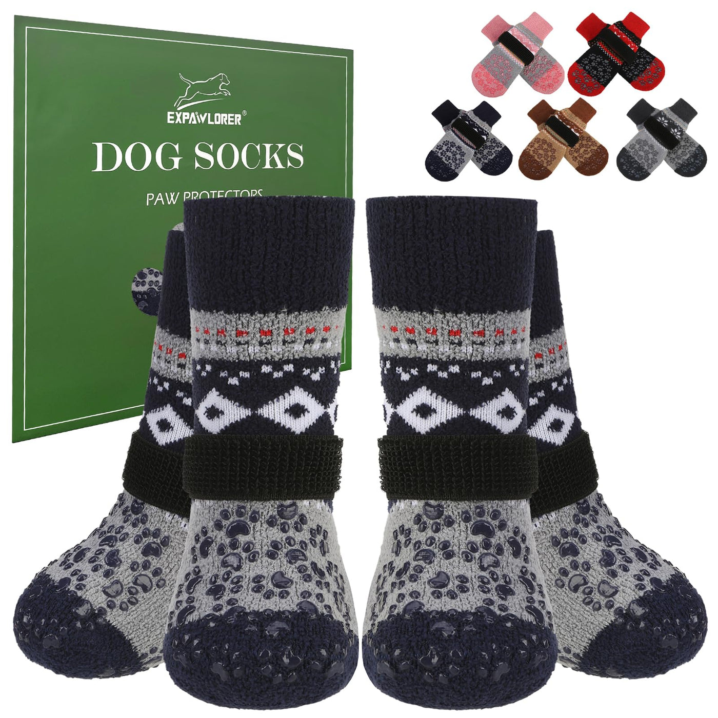 EXPAWLORER Anti Slip Dog Socks for Hardwood Floor, Winter Thick Paw Protectors Dog Grips to Prevent Licking, Dog Boots with Traction Control for Small Medium Large Senior Dogs