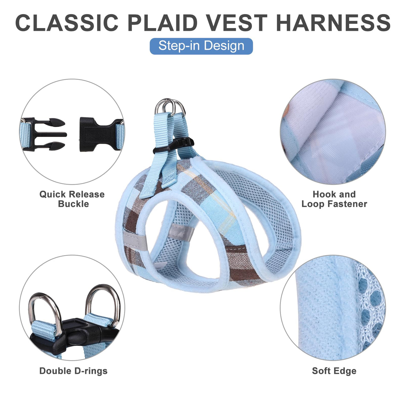 EXPAWLORER Classic Plaid Step in Dog Harness - Small Dog Collar and Leash - Soft Mesh Padded Adjustable Dog Vest Harness No Pull