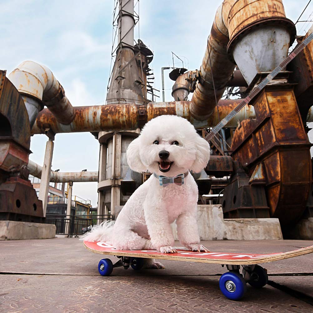 Expawlorer Dog Collar And Leash Set - Classic Plaid Bow Tie & Dog Bandana Collar With Bell, Dog Leash Tangle Free, Adjustable Co