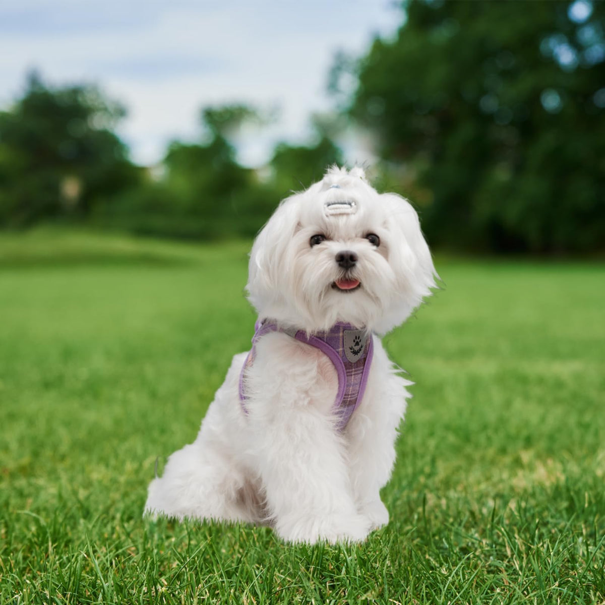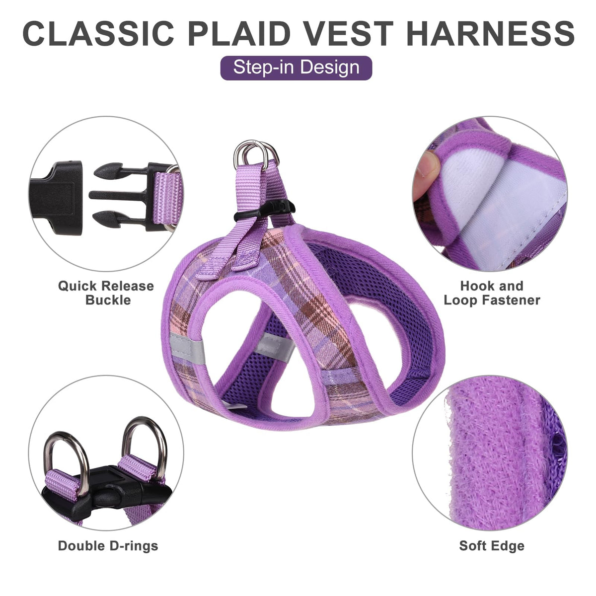 Expawlorer Dog Harness And Leash Set - Classic Plaid Step In Dog Harness With Adjustable Dog Collar, Soft Dog Vest Harness No Pull, Reflective Escapeproof For Training Outdoor Walking, Purple L