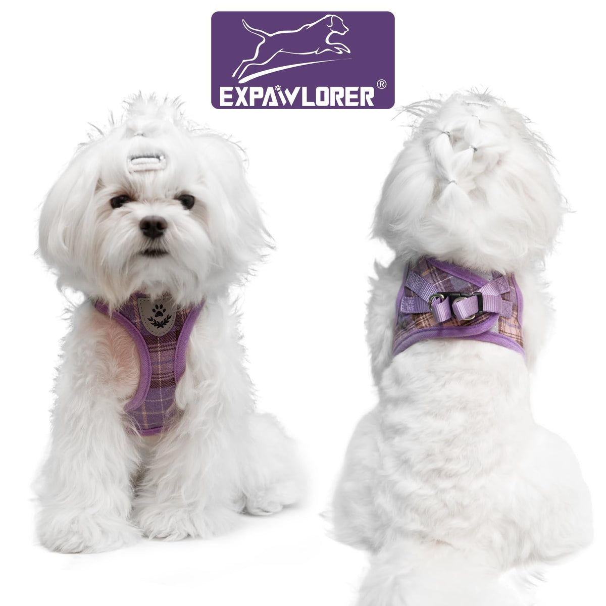 Expawlorer Dog Harness And Leash Set - Classic Plaid Step In Dog Harness With Adjustable Dog Collar, Soft Dog Vest Harness No Pull, Reflective Escapeproof For Training Outdoor Walking, Purple M
