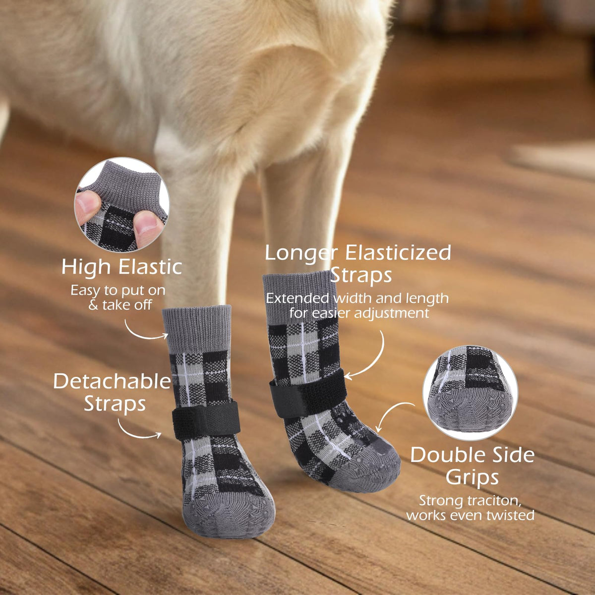 Expawlorer Dog Socks To Prevent Licking Paws, 4 Pcs Double Sided Anti Slip Dog Socks With Grippers, Dog Shoes Grips For Hardwood