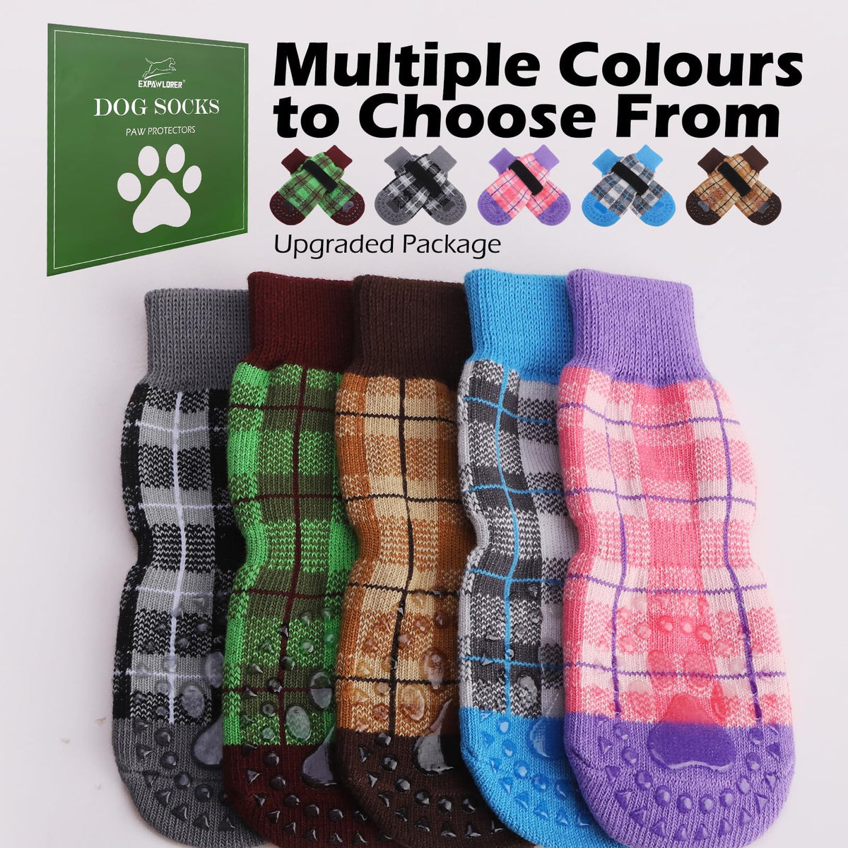 Expawlorer Dog Socks To Prevent Licking Paws, 4 Pcs Double Sided Anti Slip Dog Socks With Grippers, Dog Shoes Grips For Hardwood Floors, Dog Booties For Small Medium Large Senior Dogs