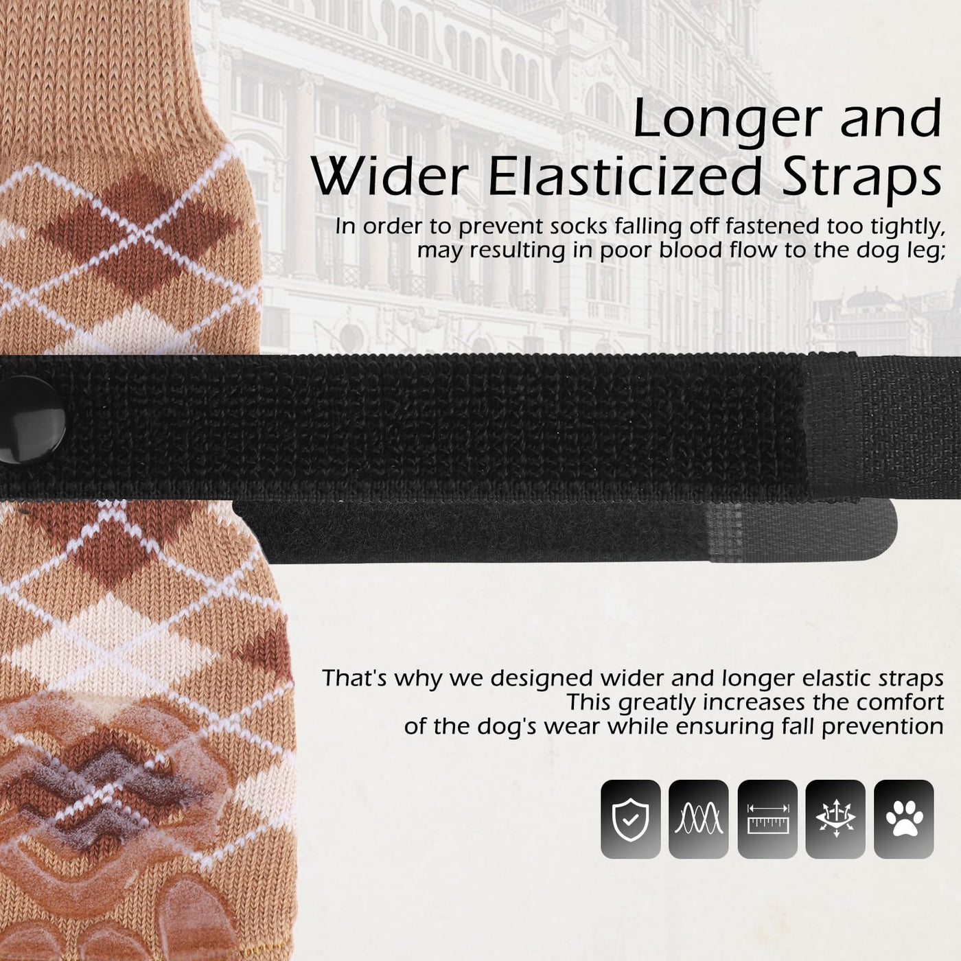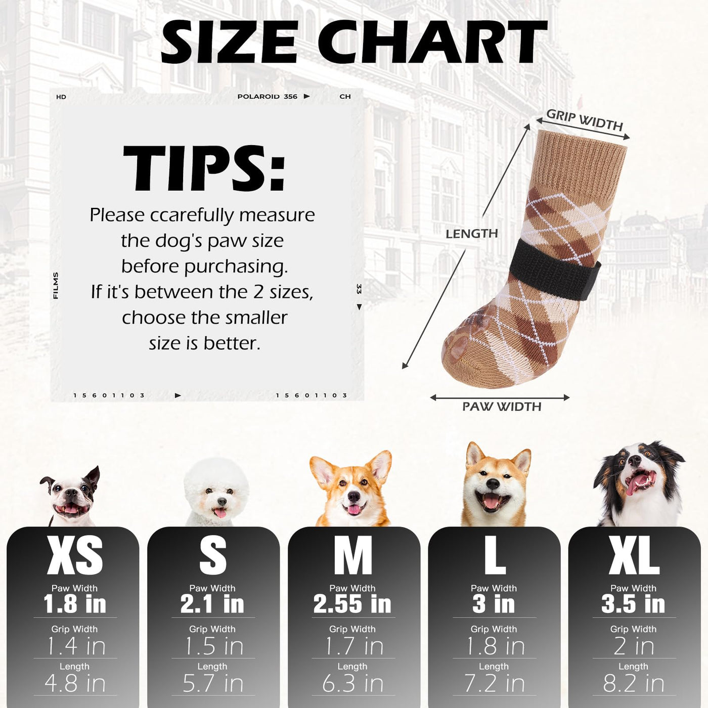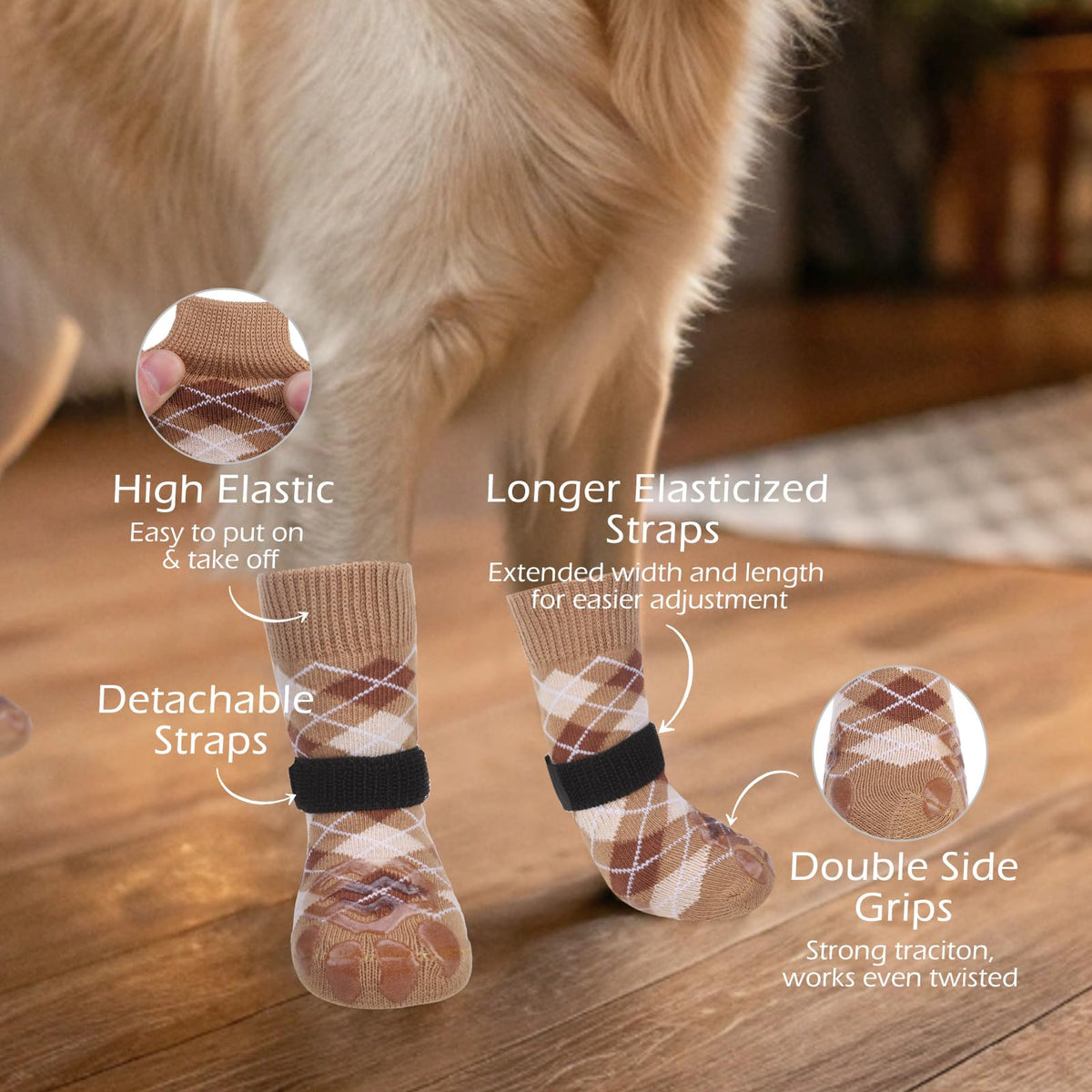 EXPAWLORER Dog Socks to Prevent Licking Paws,4 Pcs Double Sided Anti Slip Dog Socks with Grippers for Hardwood Floors,Dog Shoes Booties for Small Medium Large Senior Dogs,British Style