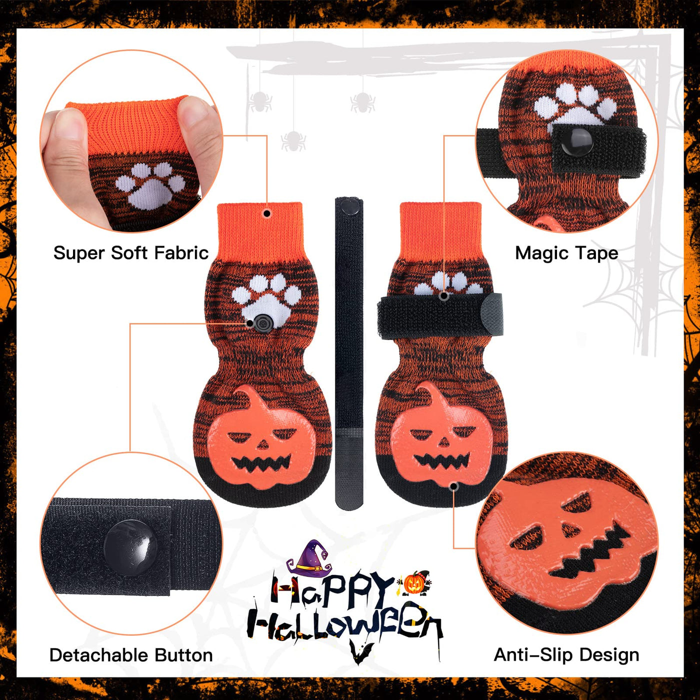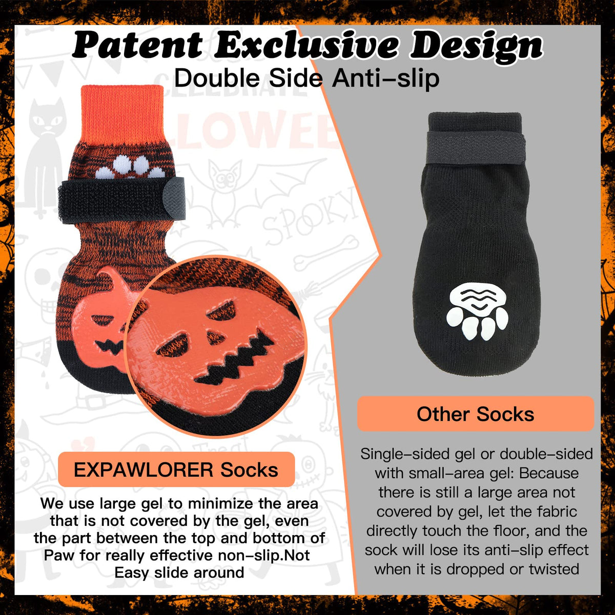 Expawlorer Double Side Non-Silp Dog Socks, Strong Grips Traction Control With Adjustable Straps, Paw Protector For Puppy Small M