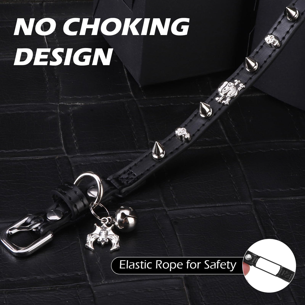 Expawlorer Halloween Leather Cat Collar - Adjustable Pet Collar With Rivet Spike For Girl Boy Cats, Punk Accessories With Bell &