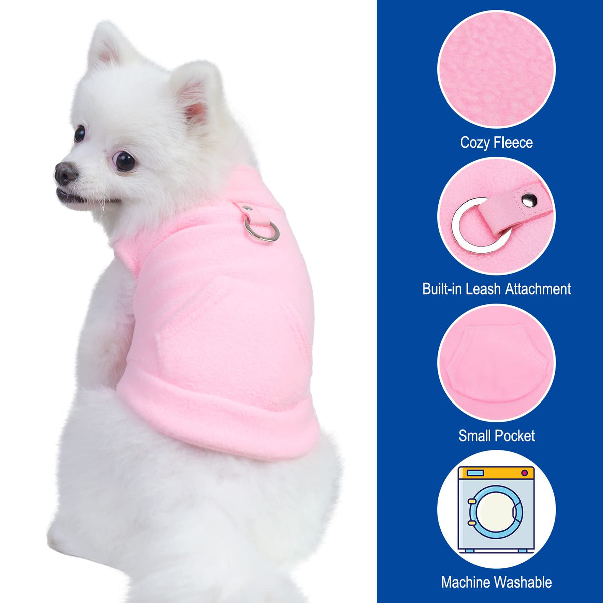 Expawlorer Polar Fleece Vest Dog Clothes - Fall Dog Sweater Pet Clothing, Warm Soft Pullover Sleeveless Dog Jacket With Small Pocket, Cold Winter Coat For Small Medium Large Dogs (Light Pink, Xs)