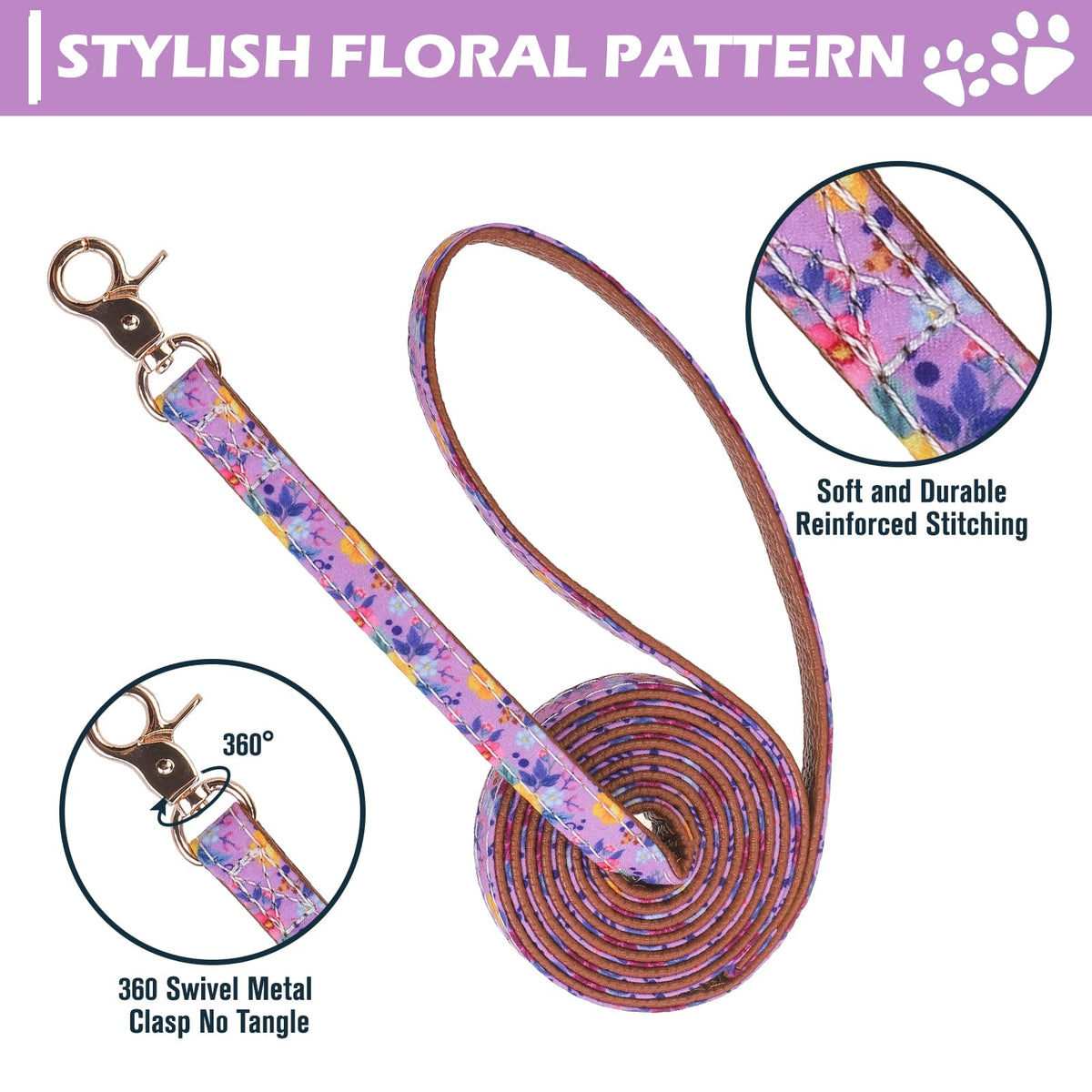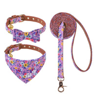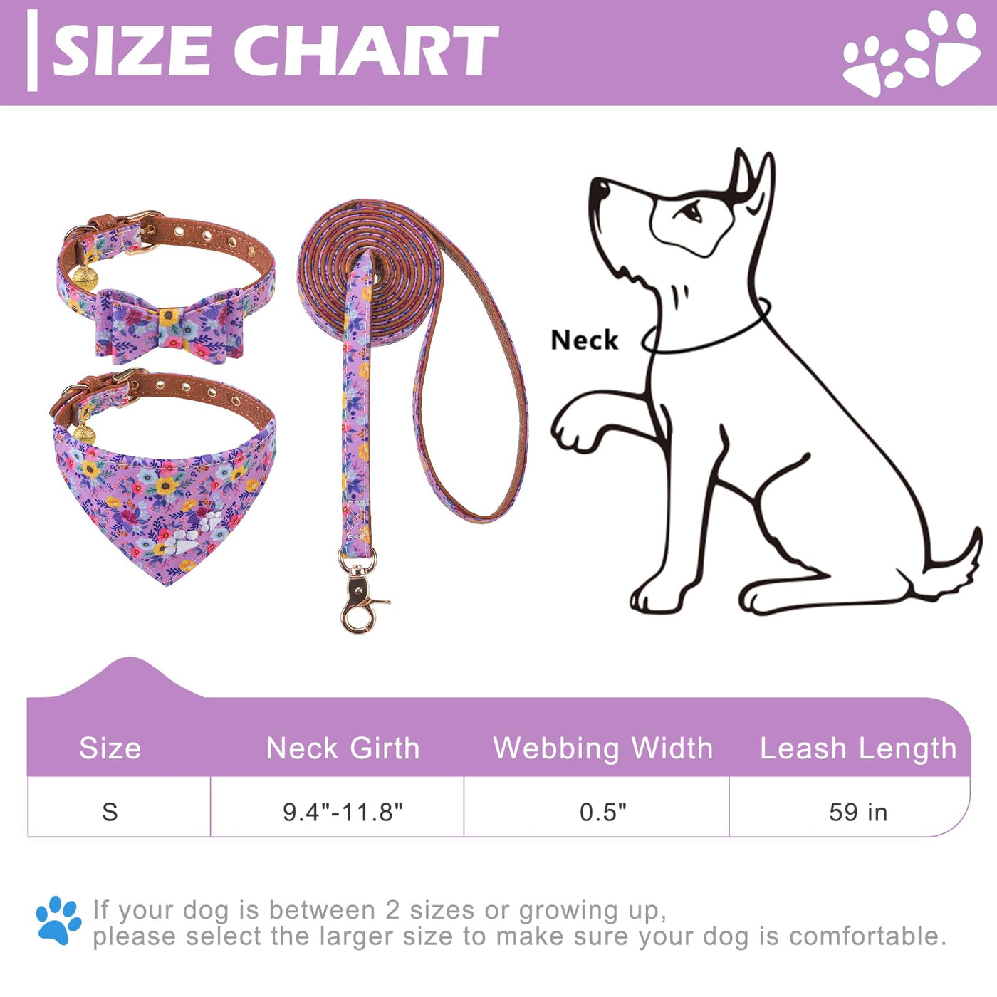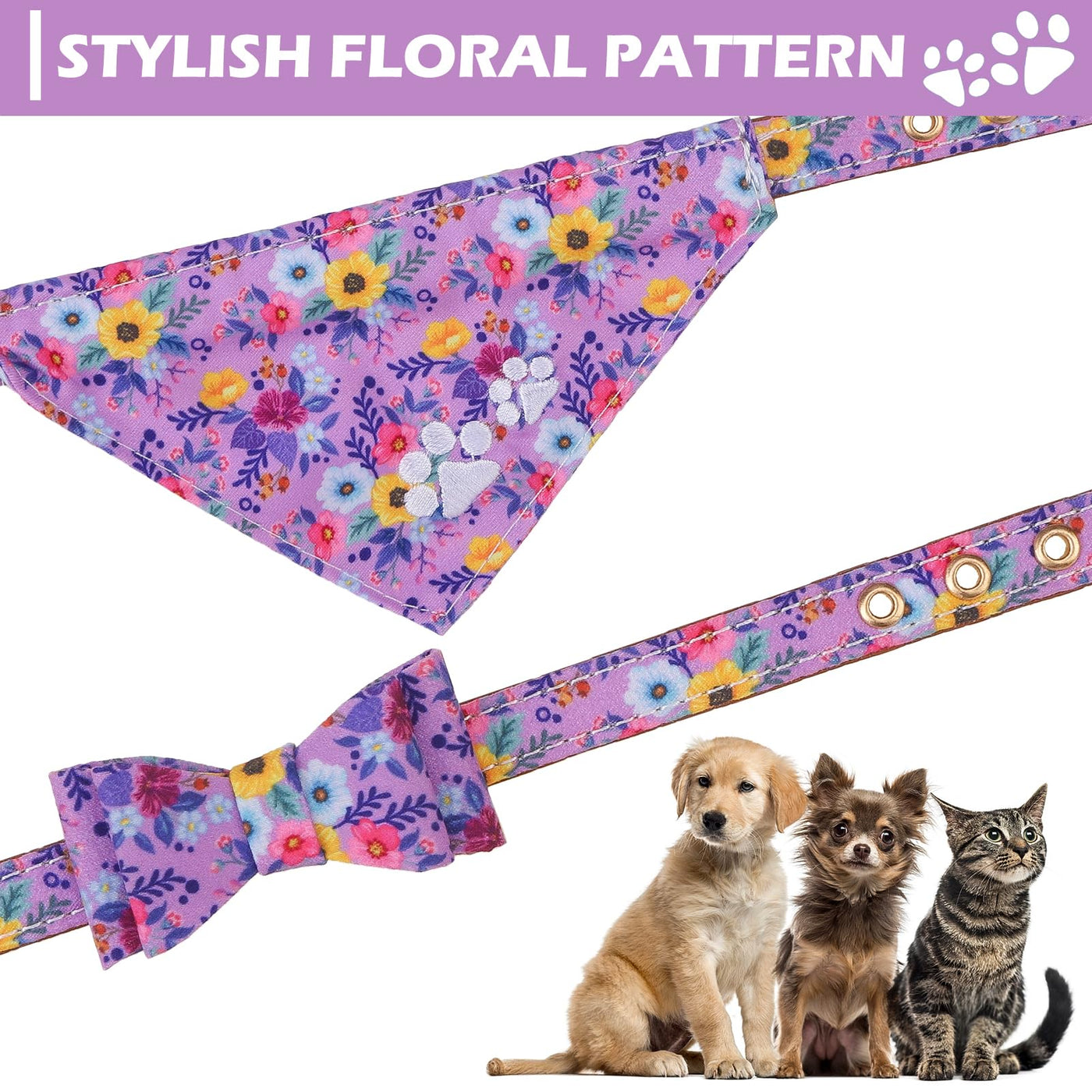 Expawlorer Puppy Collar And Leash Set - Embroidery Floral Dog Collar And Dog Leash Set, Cute Flower Bow Tie And Bandana Dog Coll