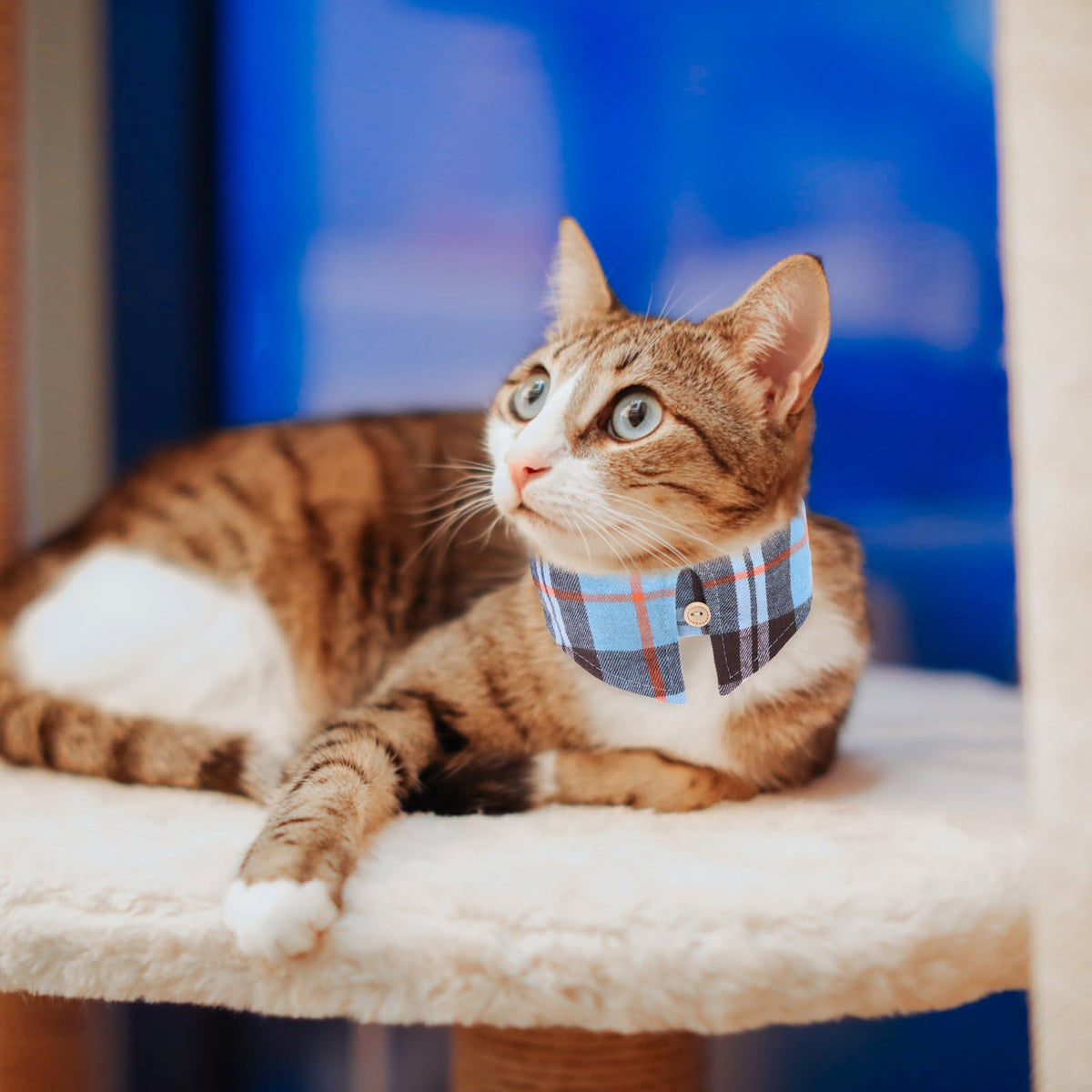 Expawlorer Puppy Collar And Leash Set - Plaid Dog Collar With Bell, Adjustable For Small Dogs Cats, Skyblue X-Small