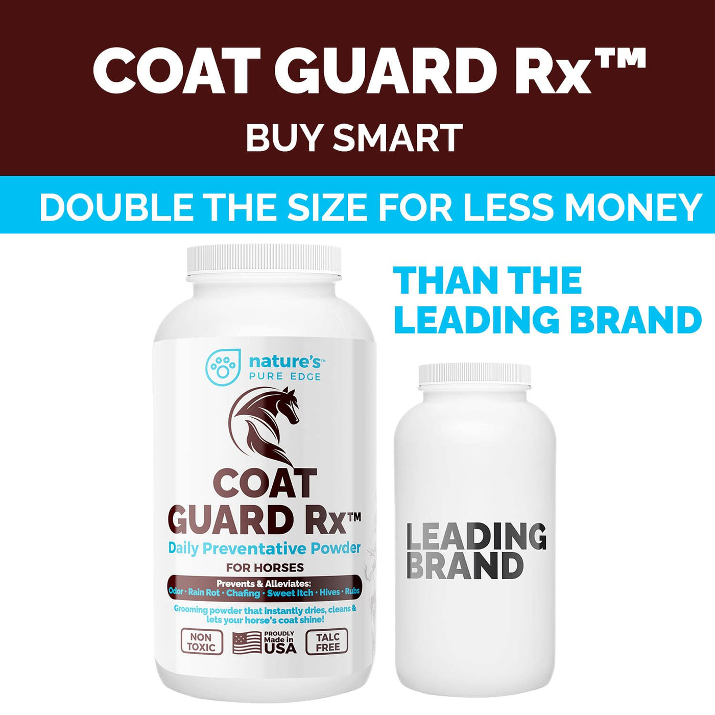 Dont Let Sweet Itch, Rain Rot, Bites, Hives, Allergies, Or Any Other Skin Irritation, Even Start! Winters Can Be Hard On Your Horses Coat, Coat Guard Rx Daily Preventative Powder Can Help! This Product Is Offered In Two Economy Sizes: 16 Ounce And 32 Ounce. The Best Value Availableguaranteed! We Use Only Non-Toxic, Talc-Free, And All Natural Ingredients. Coat Guard Rx Is Also A Fast Acting Dry Shampoo. Our Waterless Horse Shampoo Cleans And Deodorizes Your Horses Coat, Mane, And Tail. Made In The Usa, This Is A Must For Horse Owners Everywhere!