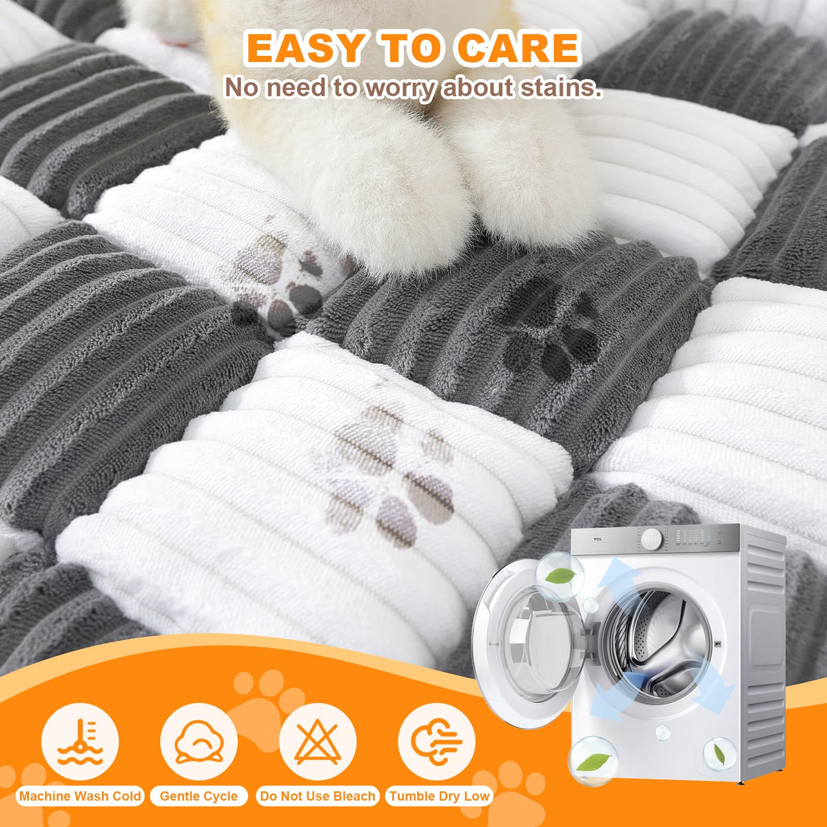 Extra Large Dog Bed For Couch, Washable Pet Bed Mat, Checkerboard Cozy Plush Sofa Mat, Pet Couch Cover Furniture Protector For S
