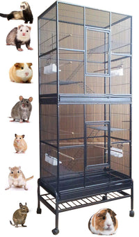 Extra Large Double Stackable Wrought Iron Chew-Proof Ferret Chinchilla Sugar Glider Small Animal Cage With Washable Tray And Rem