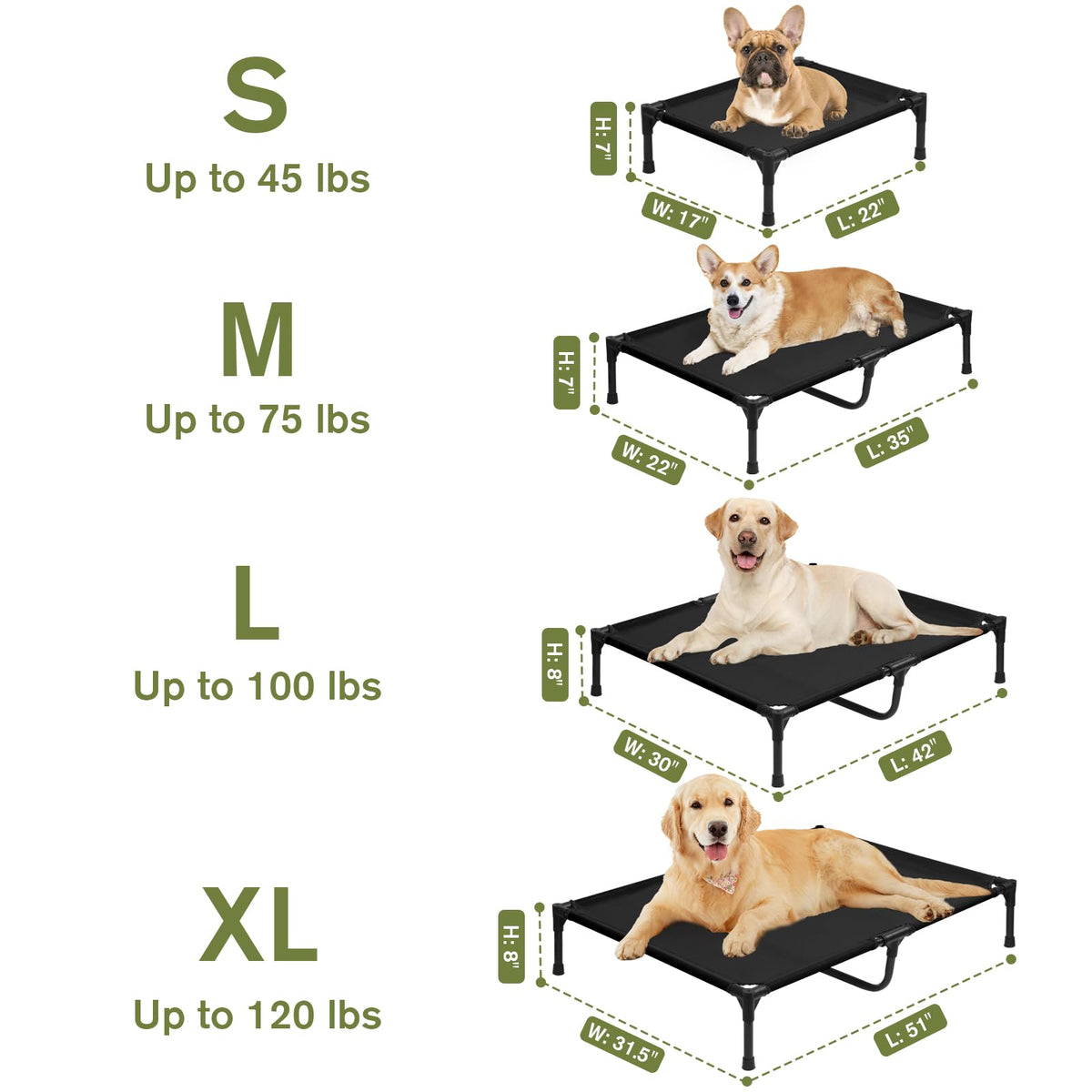 Dokdogs Elevated Dog Bed Discover The Perfect Blend Of Comfort And Durability With The Dokdogs Elevated Dog Bed - Designed For Dogs Of All Sizes. Available In Four Sizes And Five Stylish Colors (Gray, Black, Brown, Green, And Blue), This Pet Cot Is Ideal For Both Indoor And Outdoor Use. Crafted From Premium, Breathable, And Easy-To-Clean Teflon Fabric, It Ensures Your Dog Stays Cool And Comfortable. The Ultra-Thick Steel Frame With A Non-Slip Base Offers Exceptional Stability And Long-Lasting Performance. Assembly Is A Breeze With Our Detailed Instruction Manual. Elevate Your Pets Rest Experience With Dokdogs Quality And Innovation!