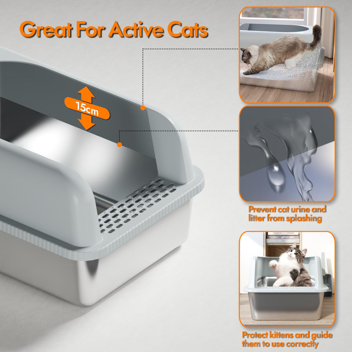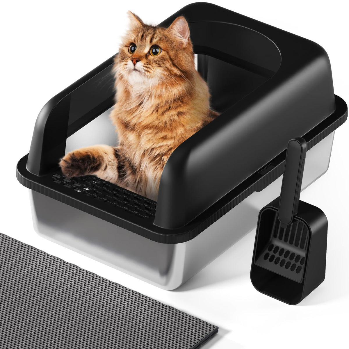 Extra Large Litter Box For Big Cat, Stainless Steel Cat Box With High Side, Open Top Metal Litter Box, Anti-Leakage,Non-Stick, I