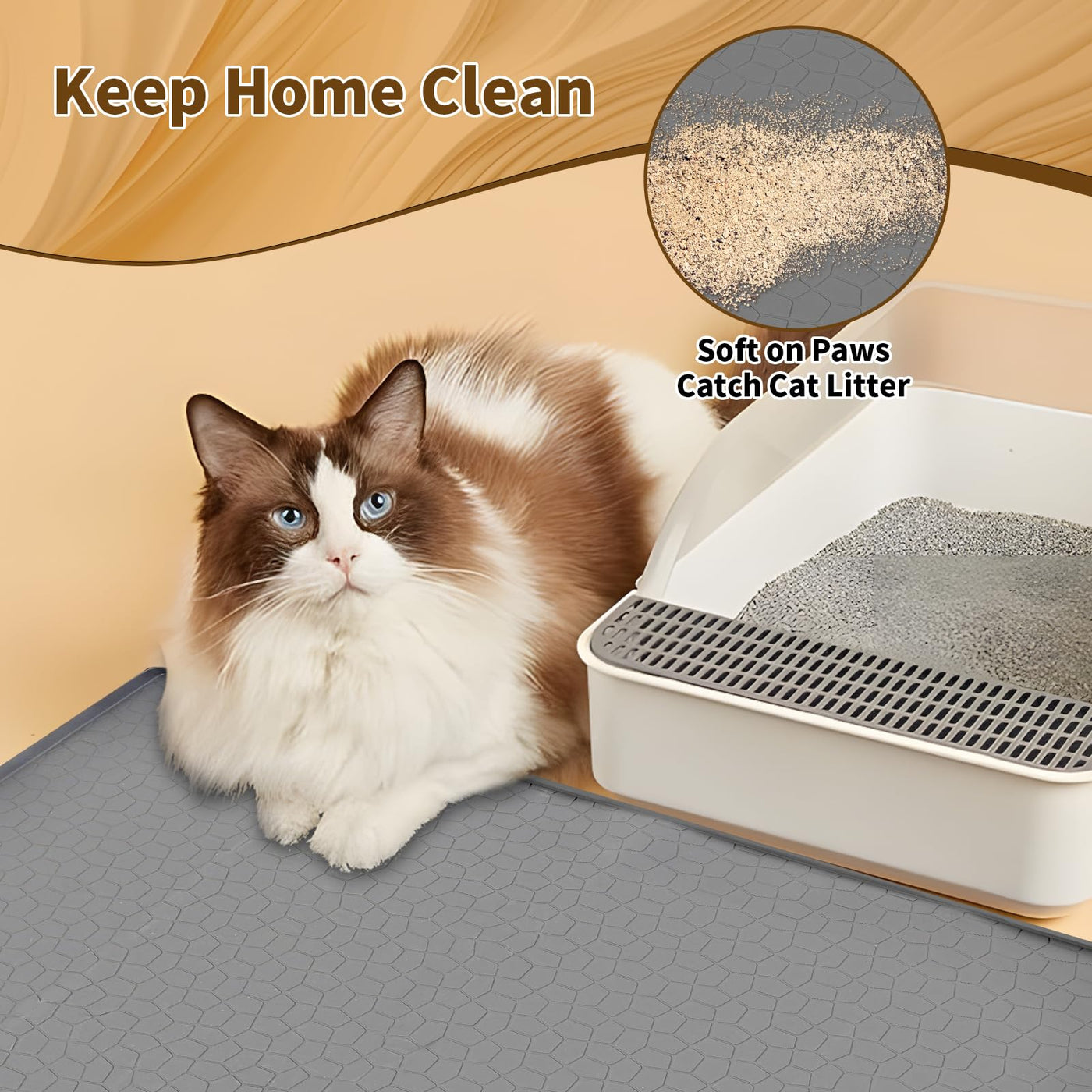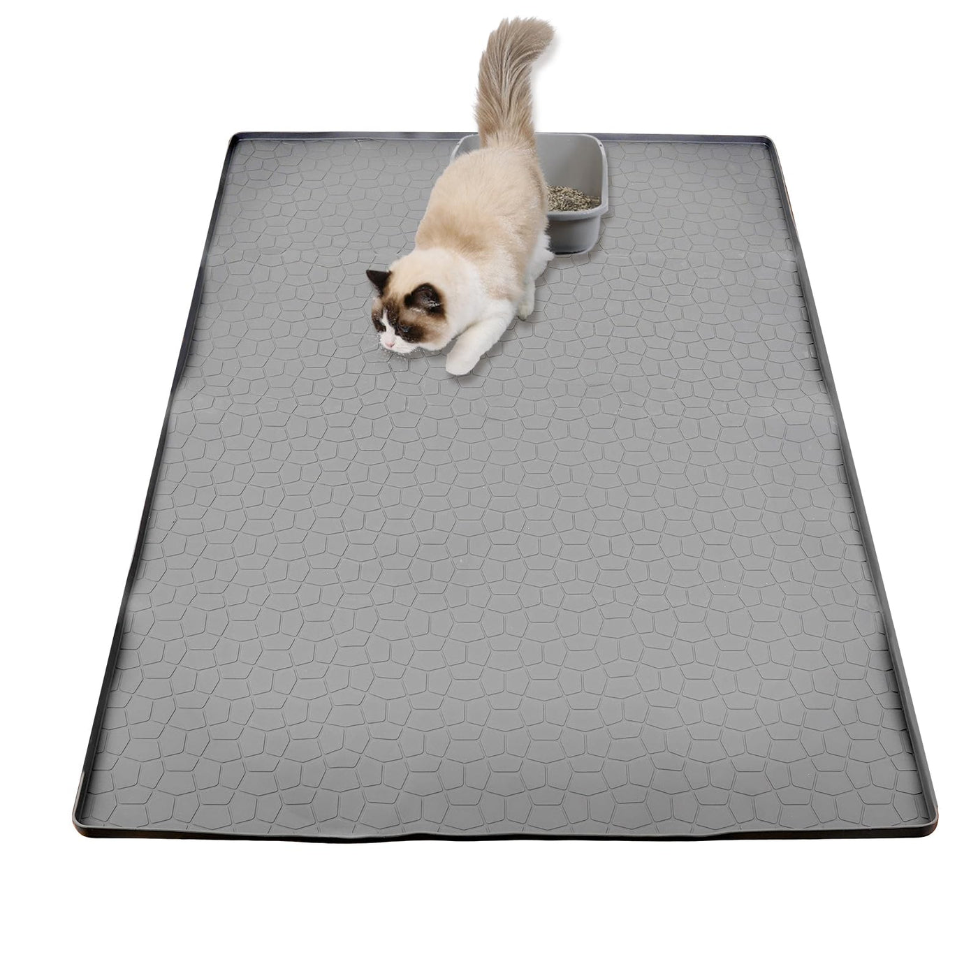 Extra Large Premium Cat Litter Mat - Heavy Duty Waterproof Silicone Floor Pad With High Edges, Non-Slip Scatter Control Trapping