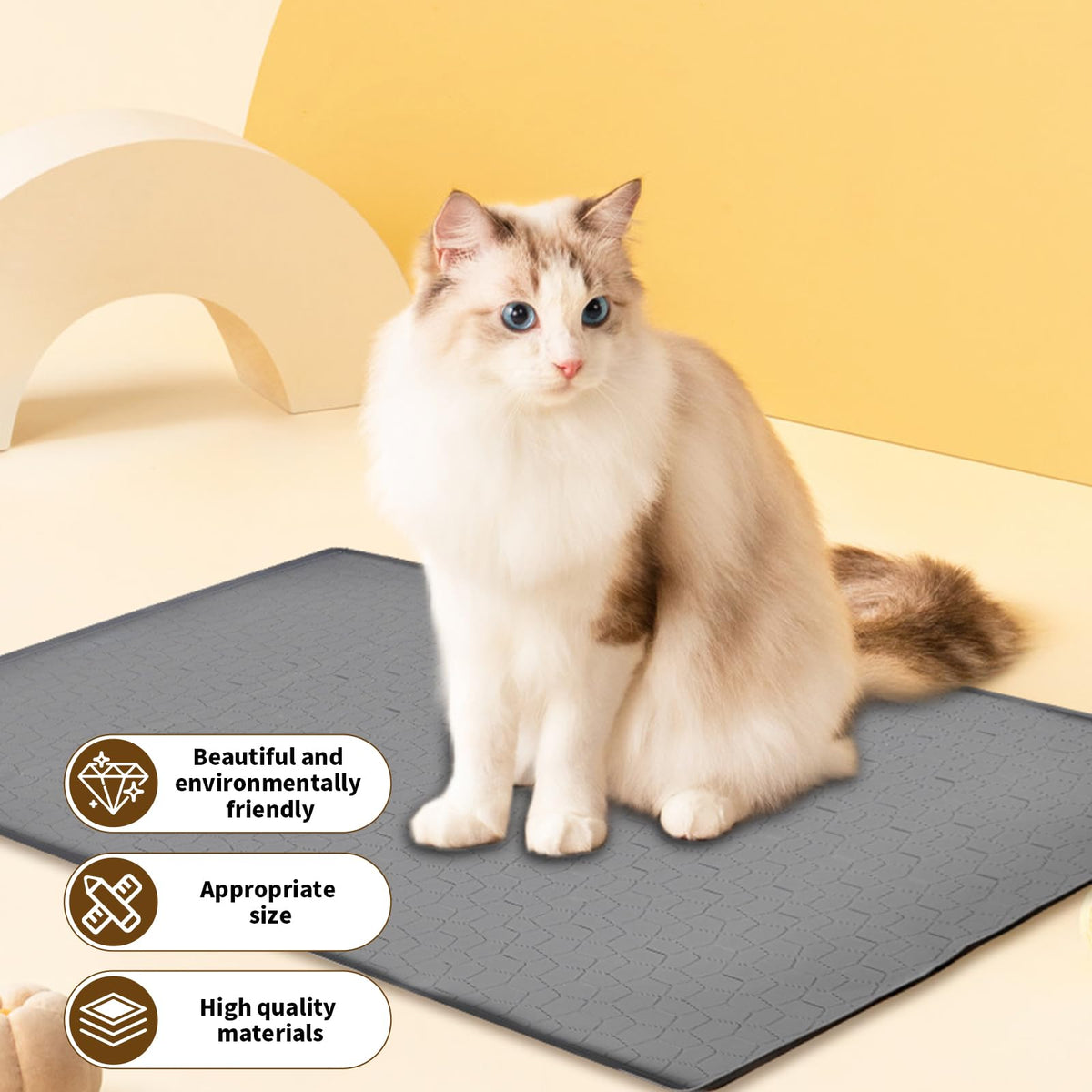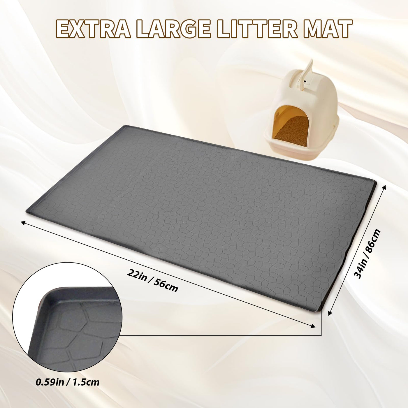 Extra Large Cat Litter Mat | Must-Have For Cat Owners | Waterproof, Non-Toxic & Durable | Fits All Litter Boxes | The Top Choice For Cat Lovers. Specification: Product Name: Extra Large 34X22 Inch Premium Cat Litter Mat - Heavy Duty Waterproof Silicone Floor Pad With High Edges, Nonslip Scatter Control Trapping Mat For Litter Box, Easy Clean Gray Kitty Litter Tray Accessories Product Material: Silicone Product Size: 31.19*30.91*5.21 Cm/12.28 X 12.17 X 2.05 Inches; Package Included: 1 Pcs Litter Box Mat
