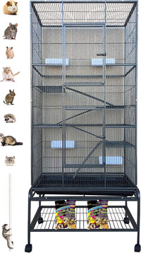 Extra Large Wrought Iron 5-Tiers Chew-Proof Ferret Squirrel Chinchilla Sugar Glider Critter Animal Home Metal Cage Easy Clean Pu