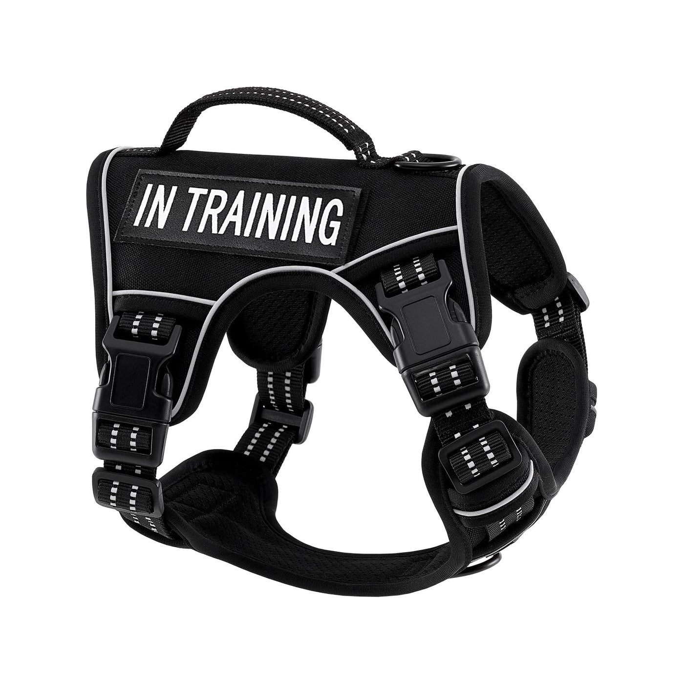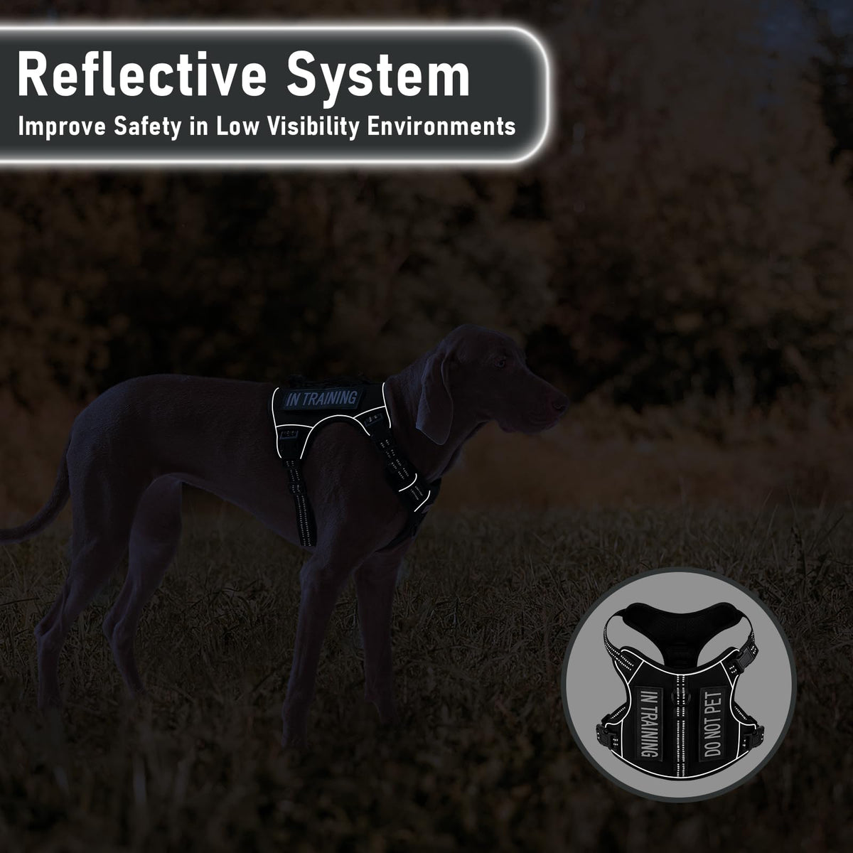 Breathable And Comfortable- Our Harness Is Made Of Durable Nylon Oxford And Padded With Soft Cushion To Protect Your Dog'S Skin. Breathable Air Mesh Keeps Your Dog Cool During Outdoor Activities. Super Reflective- The Reflector Points Are Very Bright. Having It In Our Harness That Reflects Light Gives Your Dogs A Lot Of Safety That Eases Your Anxiety When You Are Chasing Them Barefoot Down The Road In The Dark, You Can Spot Them Right Away. It Is Really Safe For Nighttime Walking. 4-Way Fully Adjustable- Our Adjustable Harness Has 4 Easy Adjusting Straps. You Can Use Its 2 Neck Straps And 2 Chest Straps To Create A Perfect Fit For Your Dog. It Is Easy To Adjust To A Larger Size As He/She Grows. No Worries About Slipping Out Or Choking. There'S A Snap Buckle Closure At The Side Of The Neck, And Then One On Each Side Of The Torso Part. So, All Your Dog Has To Do Is Stand There, Let You Unclick The 3 Closures And It Falls Right Off Of Her/Him. 3 Buckles Make It So Easy To Put This Harness On Your Dog And Take It Off, All Done By Yourself, Without Another Person'S Help. Also, You No Longer Have To Try To Slide A Harness Over Your Dogs Head. Both D-Rings ( Front & Back ) Are All Metal, Very Strong. The Front D-Ring Allows You To Have Full Control Over Dogs And Give Them Better Comfort. The Back D-Ring Is Ideal For Daily Dog Walks, Jogging, Or Hiking. Theres A Handle To Help Control When Your Dog Gets Excited For Going On Walks. It Will Allow You To Grab Dogs Quickly And Get Better Control Over Them Than A Leash Or Grabbing Their Collars Would Do. It Also Can Be Used In The Car With A Seat Belt Attachment And Dogs Are Secure In Case Of An Accident Or Stopping Short.