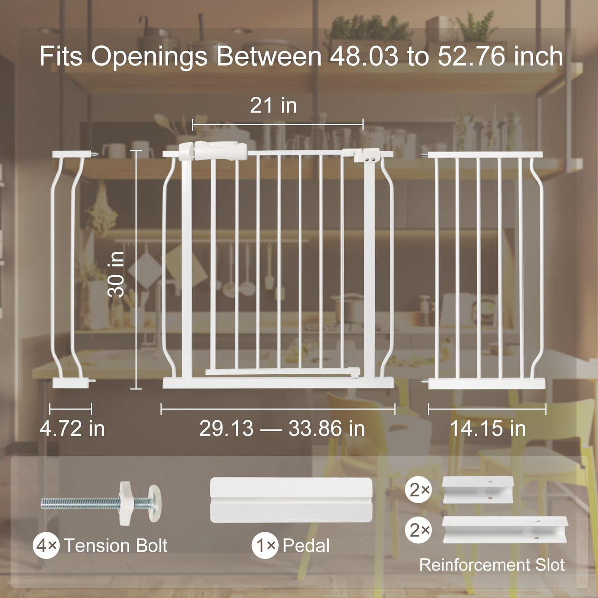 Extra Wide Baby Gate 48.03-52.76 Pressure Mounted,Child Dog Pet Safety Gates with Walk Through Door for Doorways Stairs No Drill