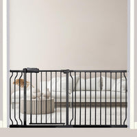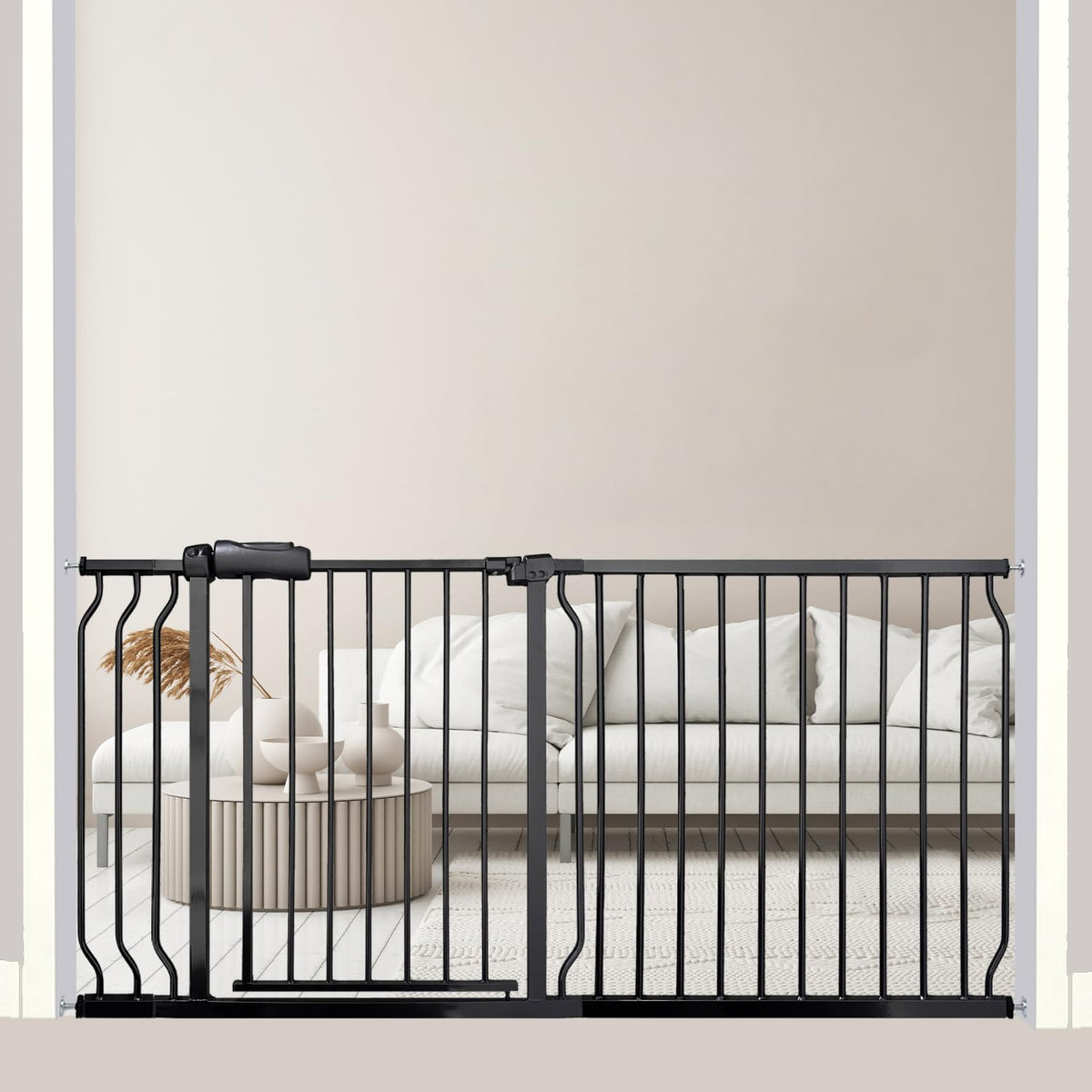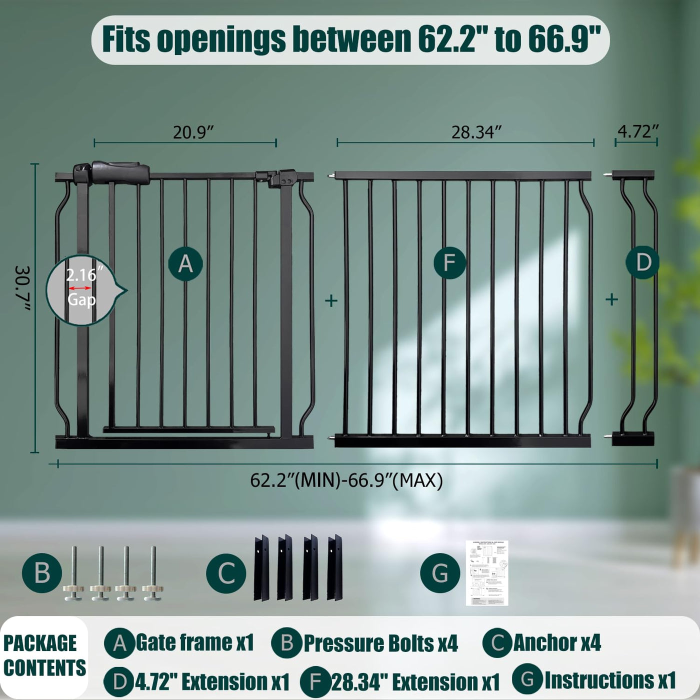 Extra Wide Baby Gate 62-67 Inch, Pressure Mounted Safety Child & Pet Gate - Black Metal - Large Walk Through - Long - for House