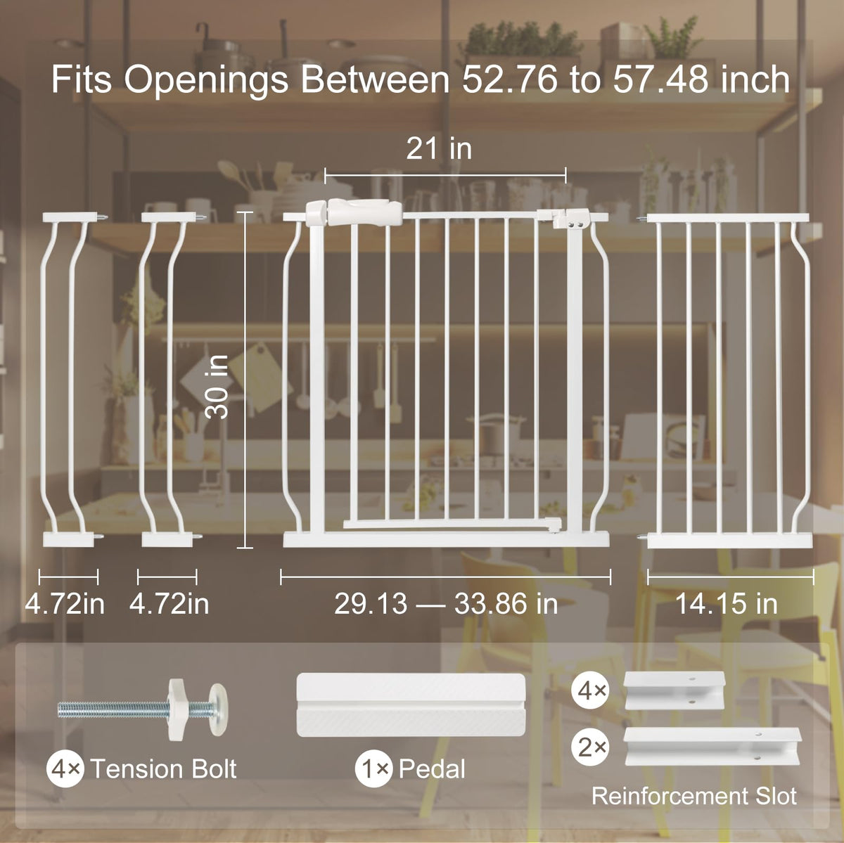 Extra Wide Baby Gate with Door Pressure Mounted 52.76-57.48 Inch,Child Baby Gates for Doorways No Drilling,Walk Through Dog Gate